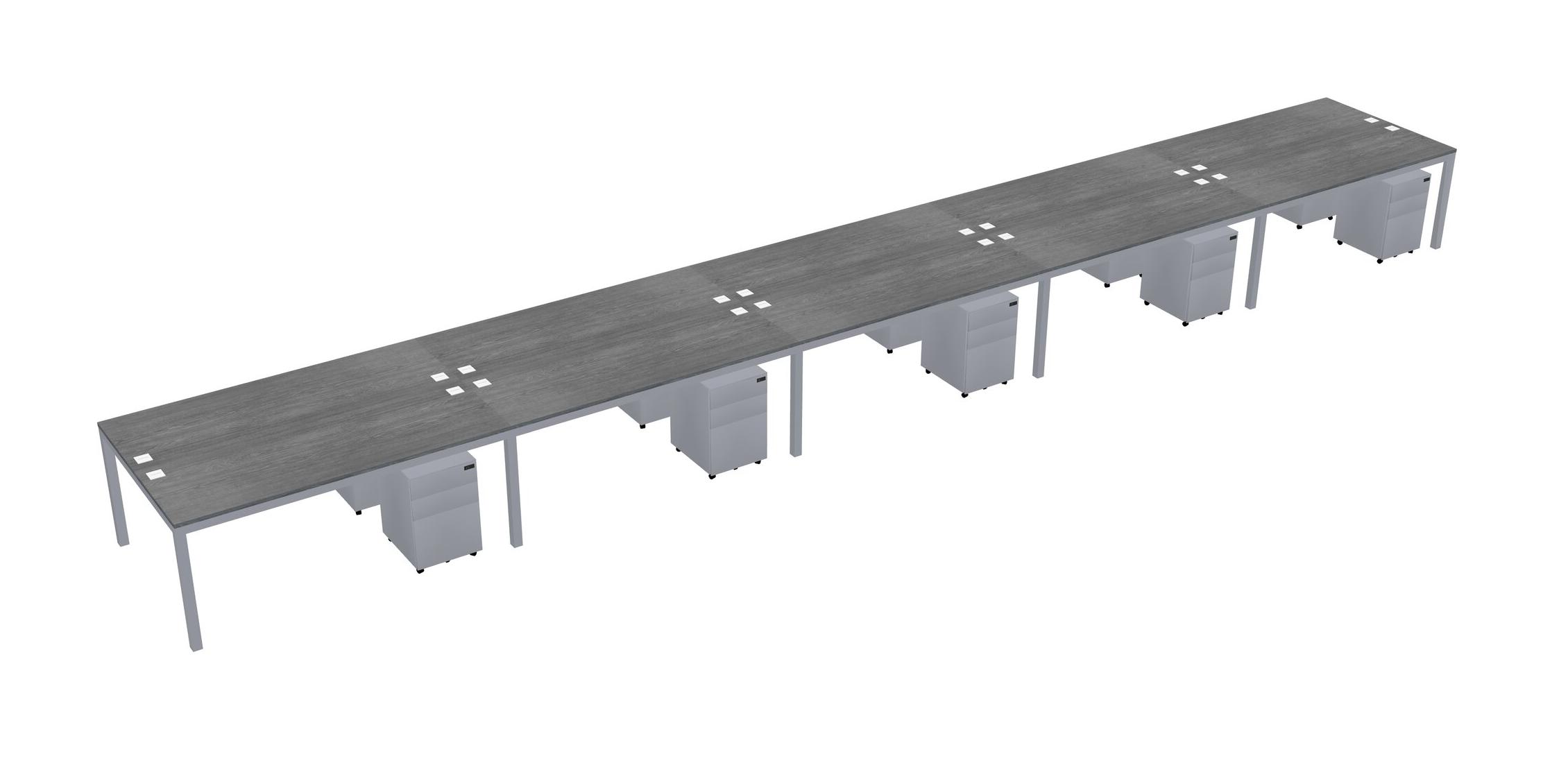 Grey Shared Rectangular Office Desk With Metal Mobile Drawers For 10 Persons