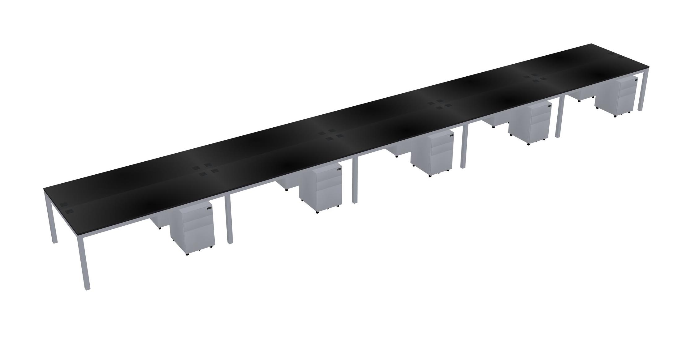 Black Shared Rectangular Office Desk With Metal Mobile Drawers For 10 Persons