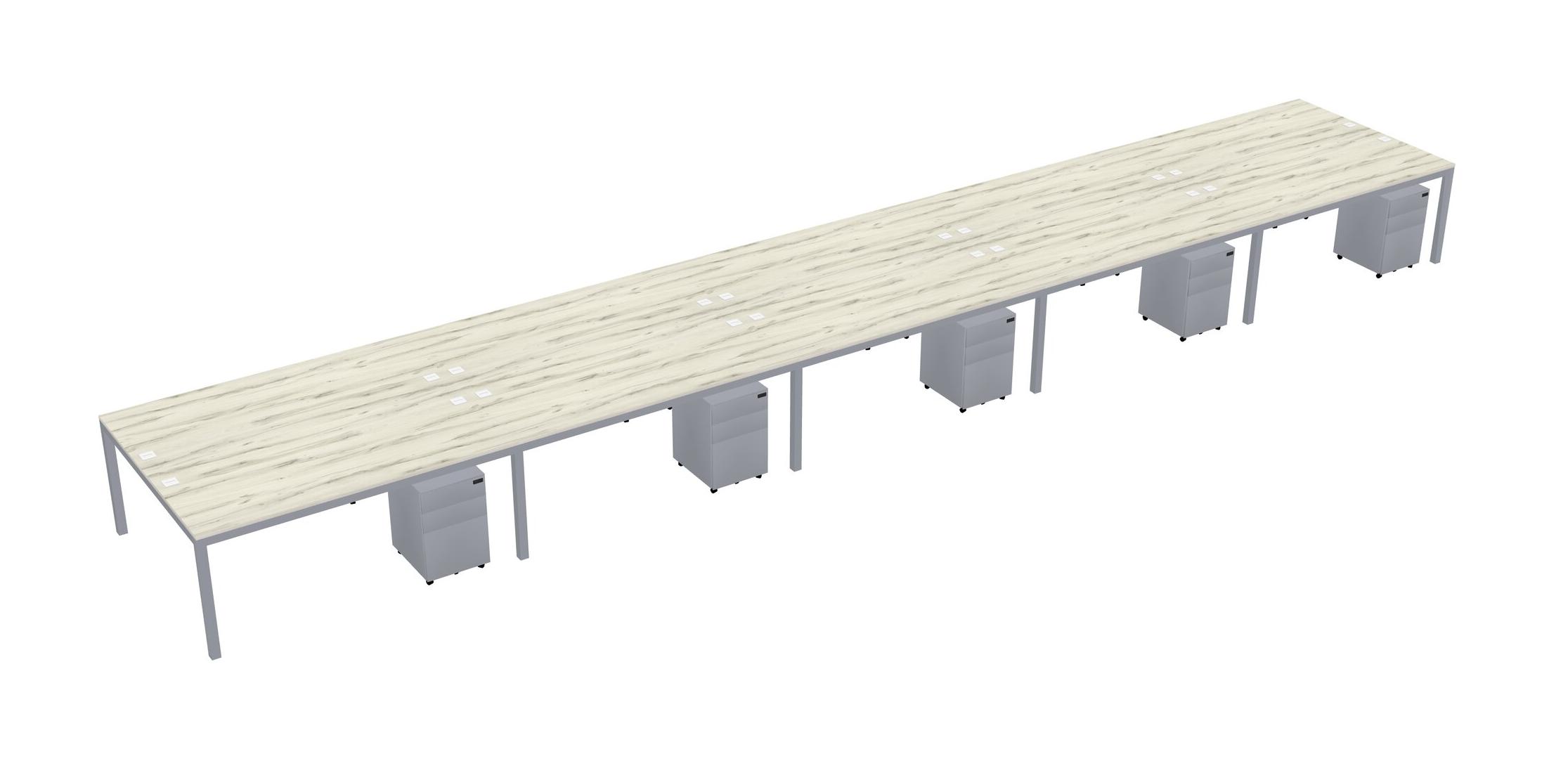 Heinne Holz Shared Rectangular Office Desk With Metal Mobile Drawers For 10 Persons