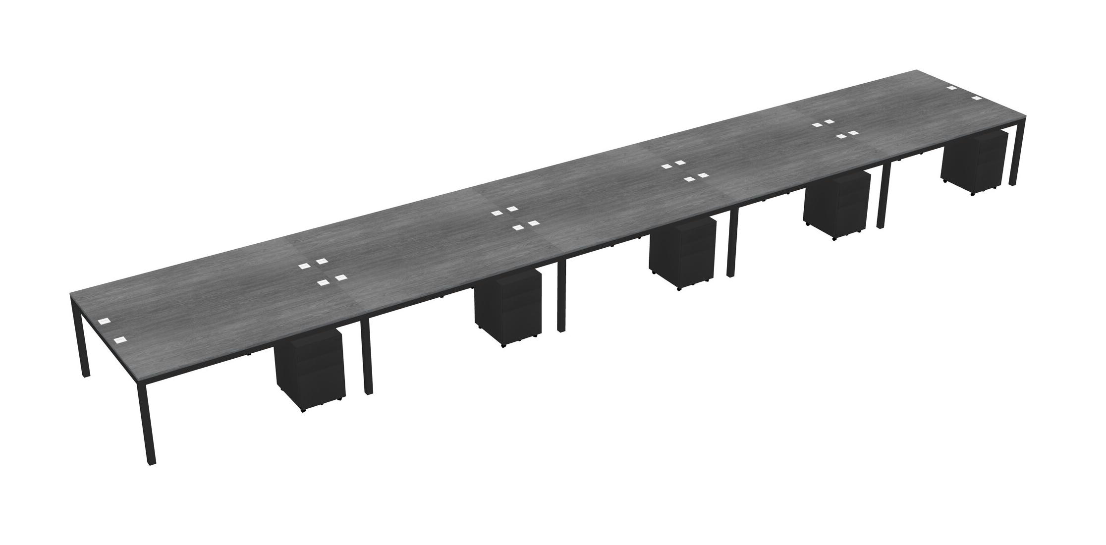 Grey Shared Rectangular Office Desk With Metal Mobile Drawers For 10 Persons