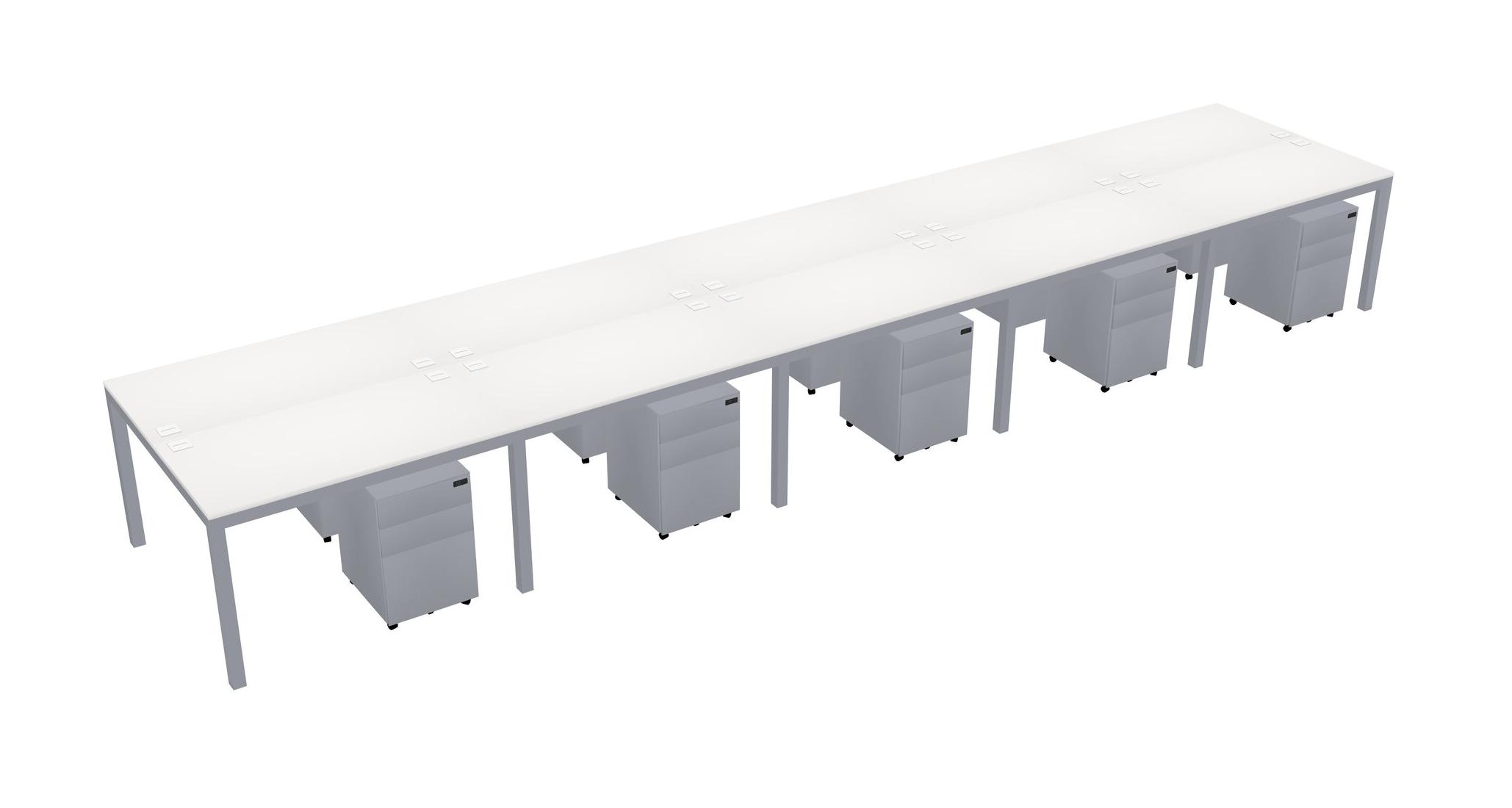 White Shared Rectangular Office Desk With Metal Mobile Drawers For 10 Persons