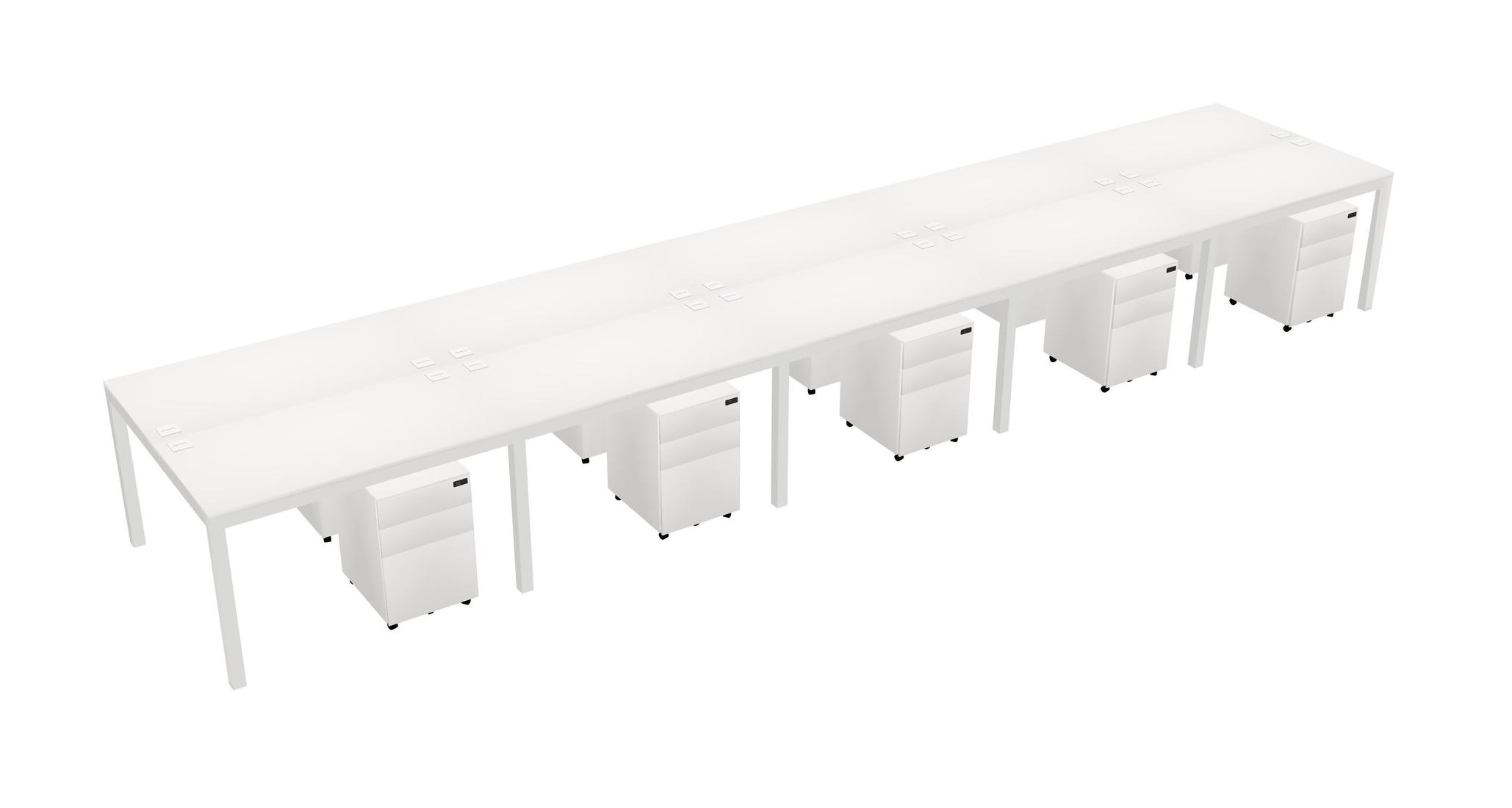 White Shared Rectangular Office Desk With Metal Mobile Drawers For 10 Persons