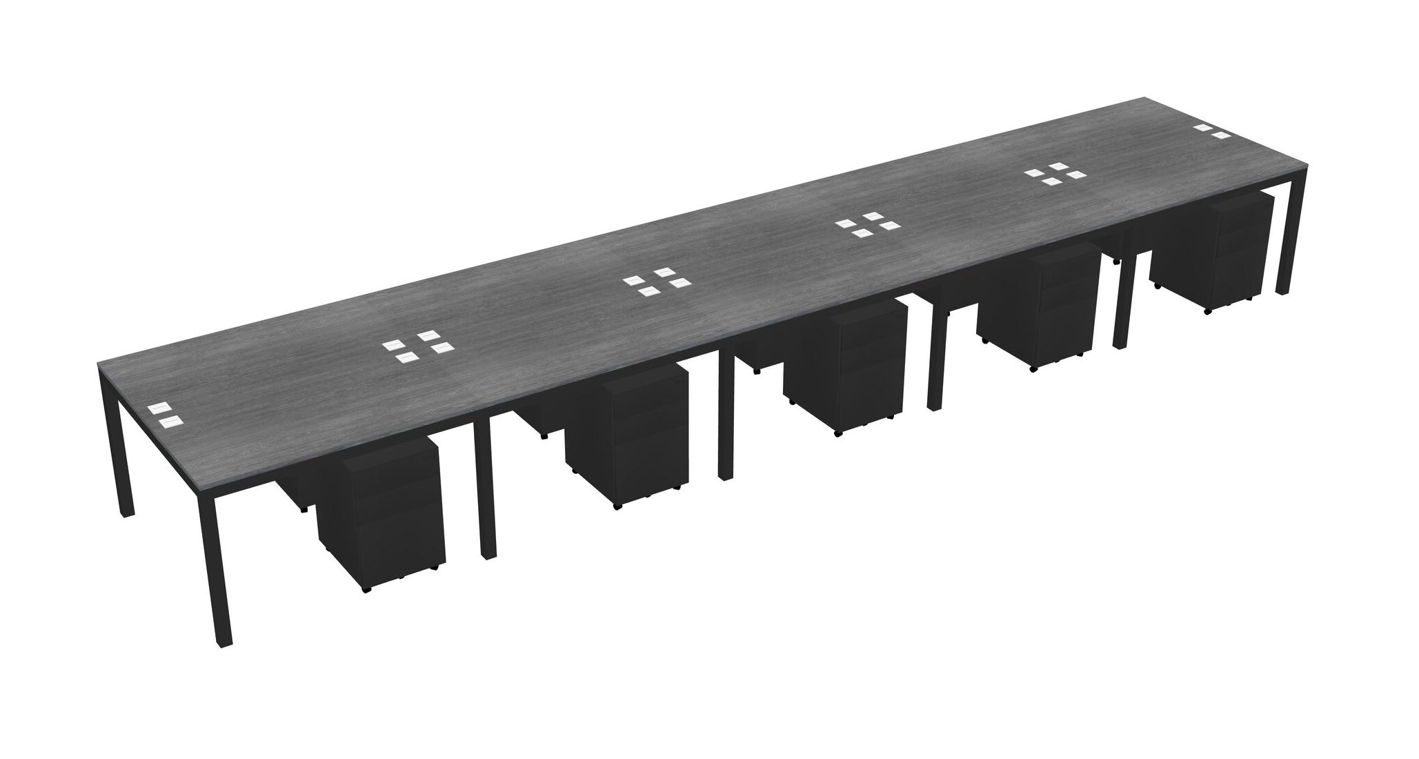 Grey Shared Rectangular Office Desk With Metal Mobile Drawers For 10 Persons