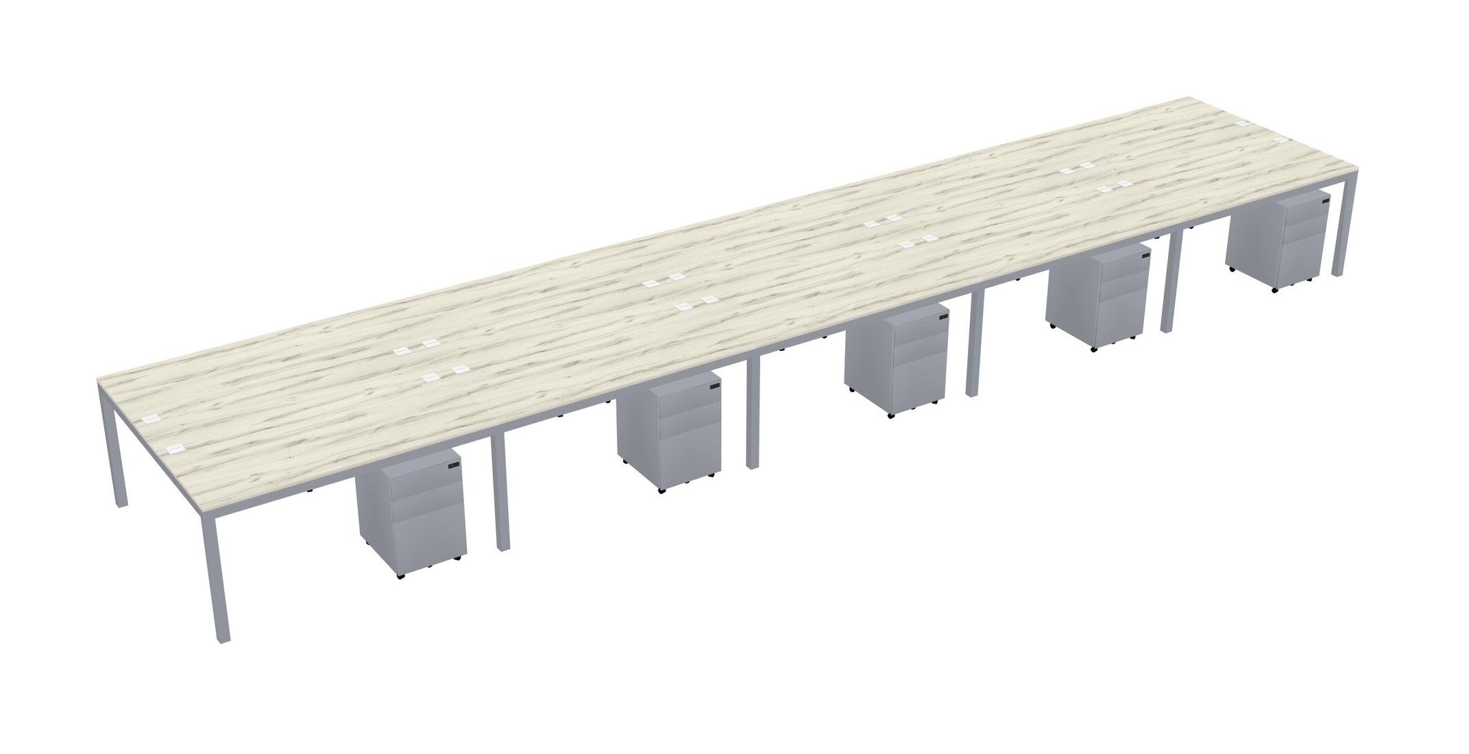 Heinne Holz Shared Rectangular Office Desk With Metal Mobile Drawers For 10 Persons