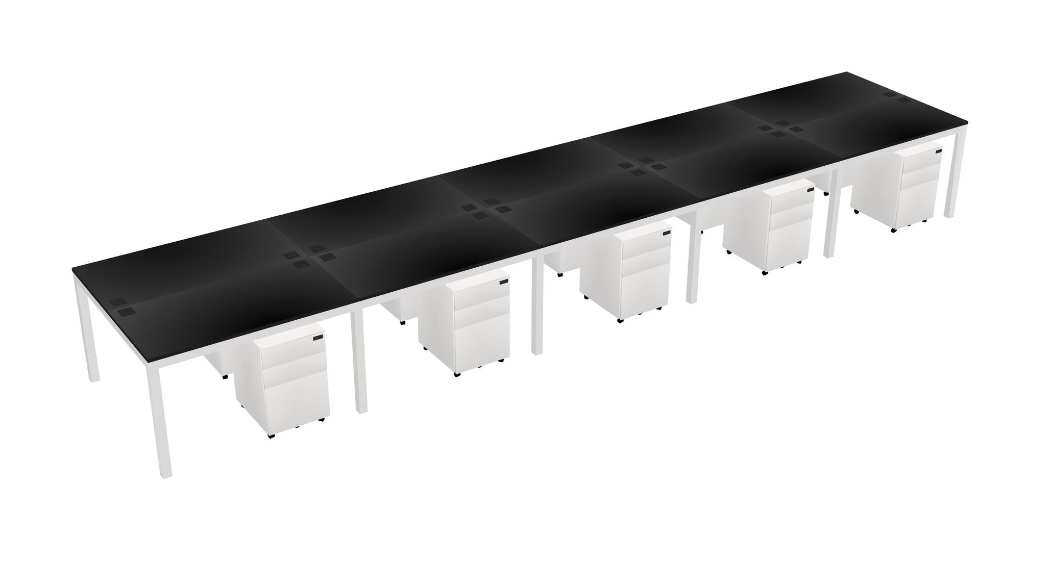Black Shared Rectangular Office Desk With Metal Mobile Drawers For 10 Persons