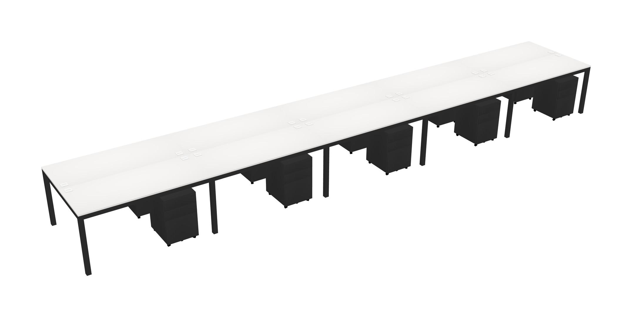 White Shared Rectangular Office Desk With Metal Mobile Drawers For 10 Persons
