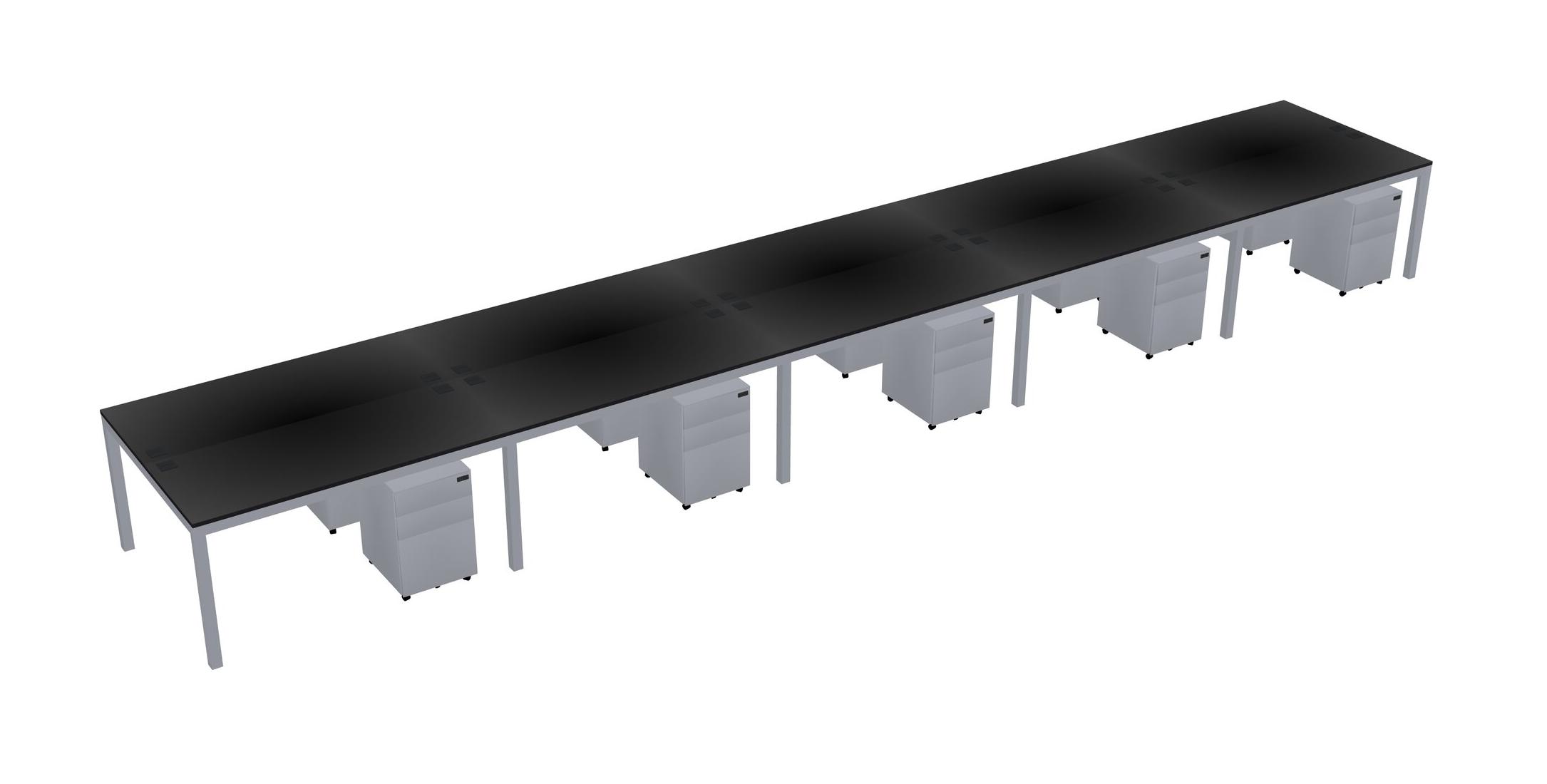 Black Shared Rectangular Office Desk With Metal Mobile Drawers For 10 Persons