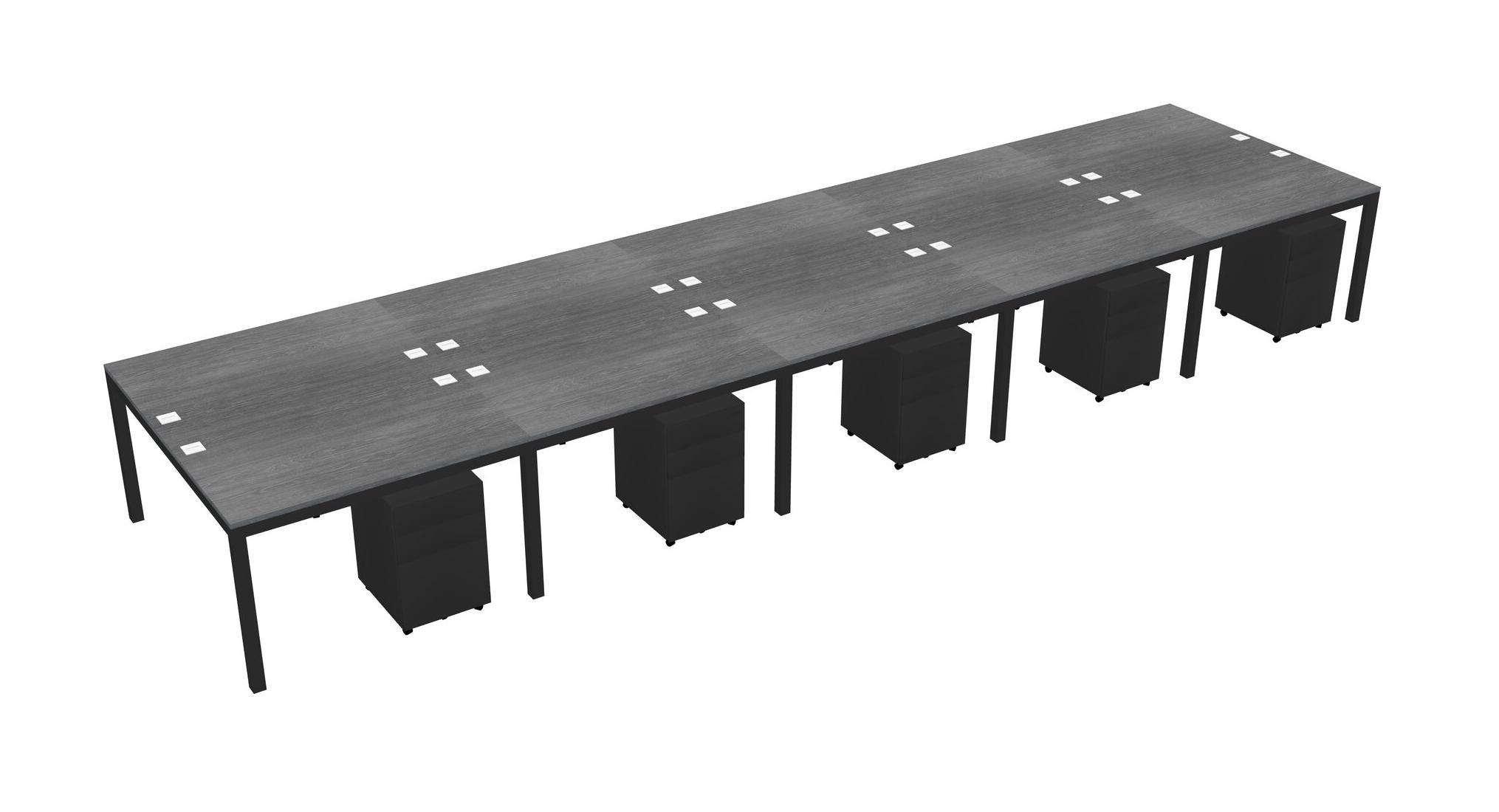 Grey Shared Rectangular Office Desk With Metal Mobile Drawers For 10 Persons