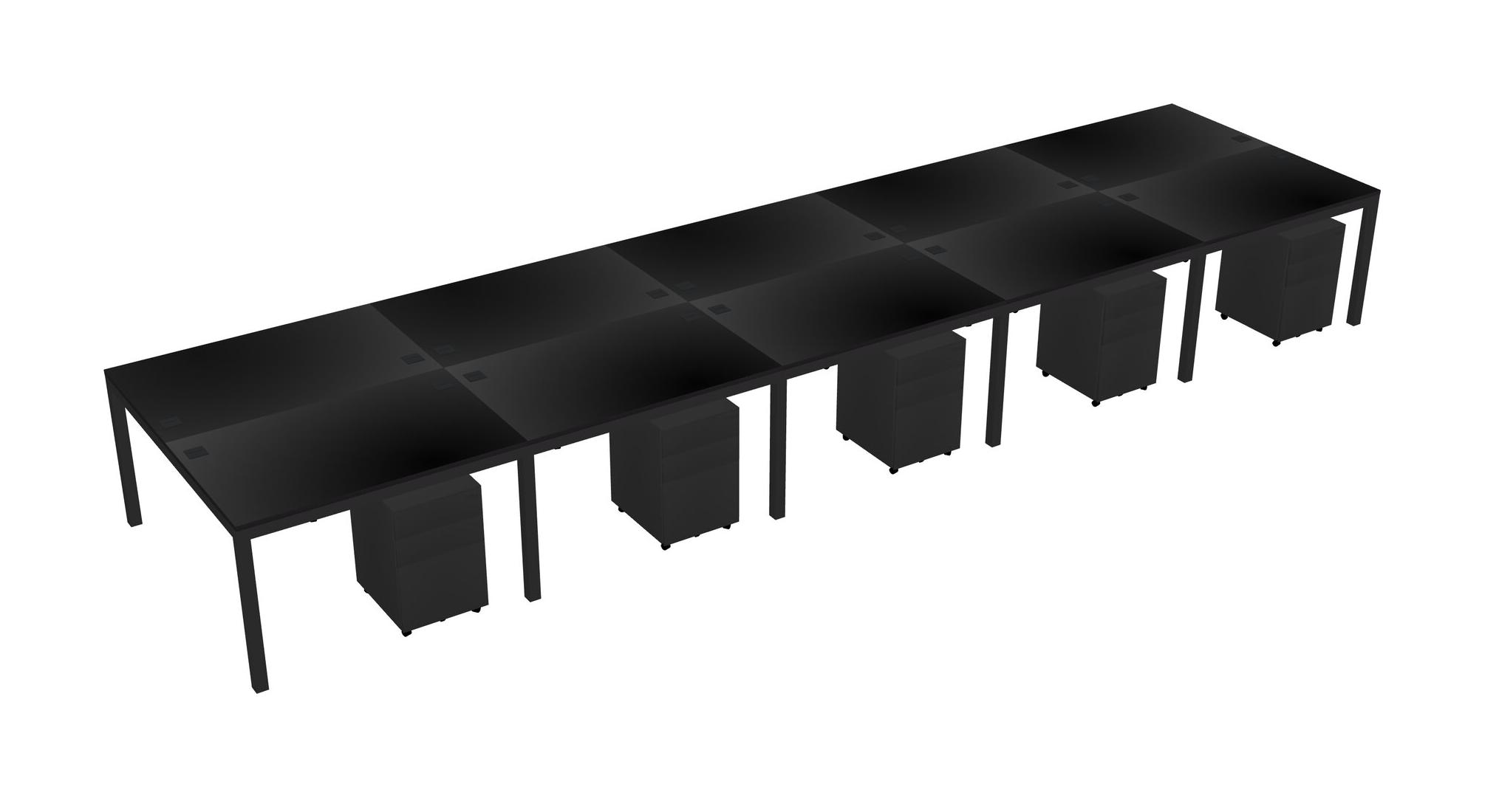 Black Shared Rectangular Office Desk With Metal Mobile Drawers For 10 Persons