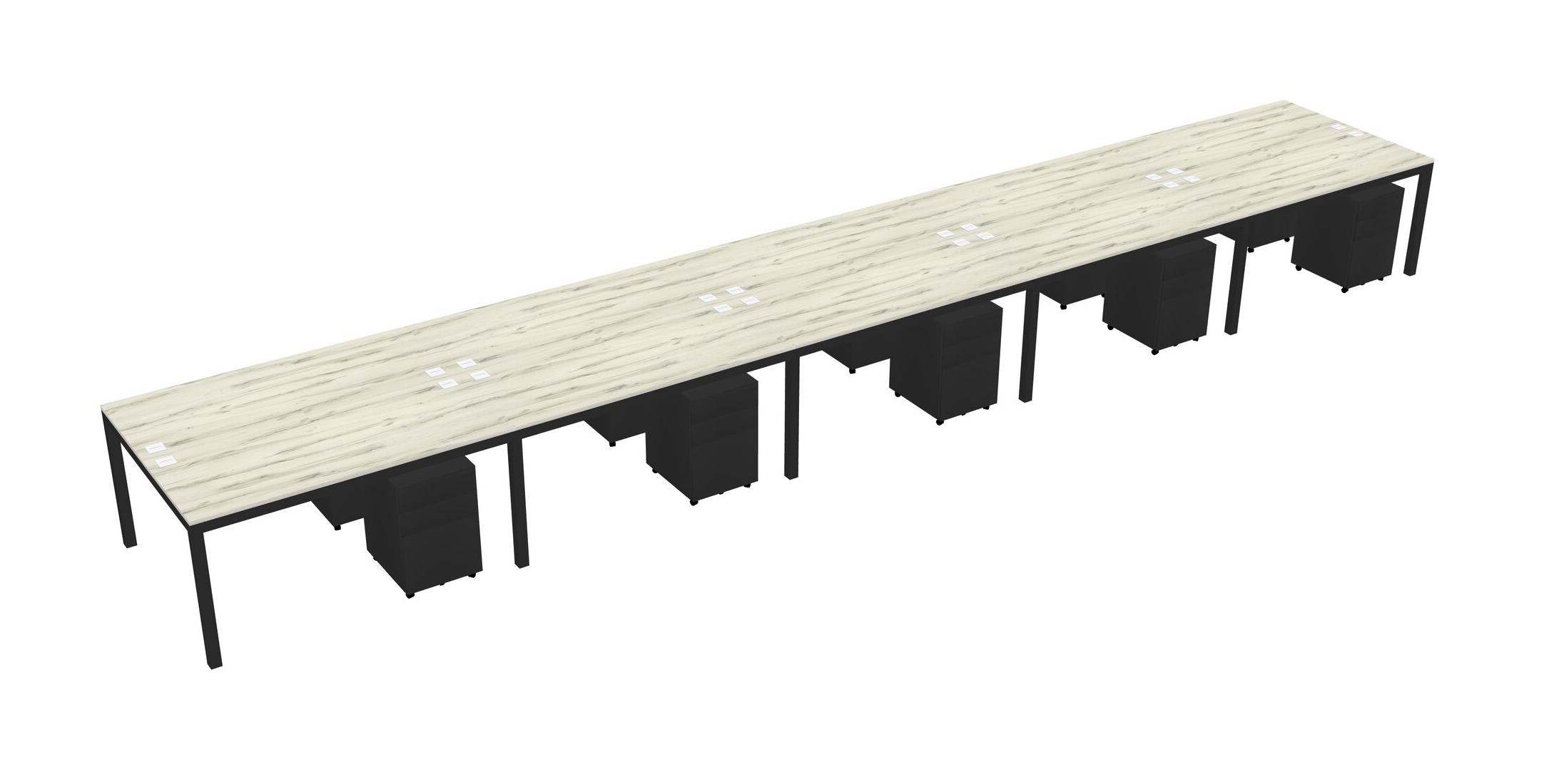 Heinne Holz Shared Rectangular Office Desk With Metal Mobile Drawers For 10 Persons