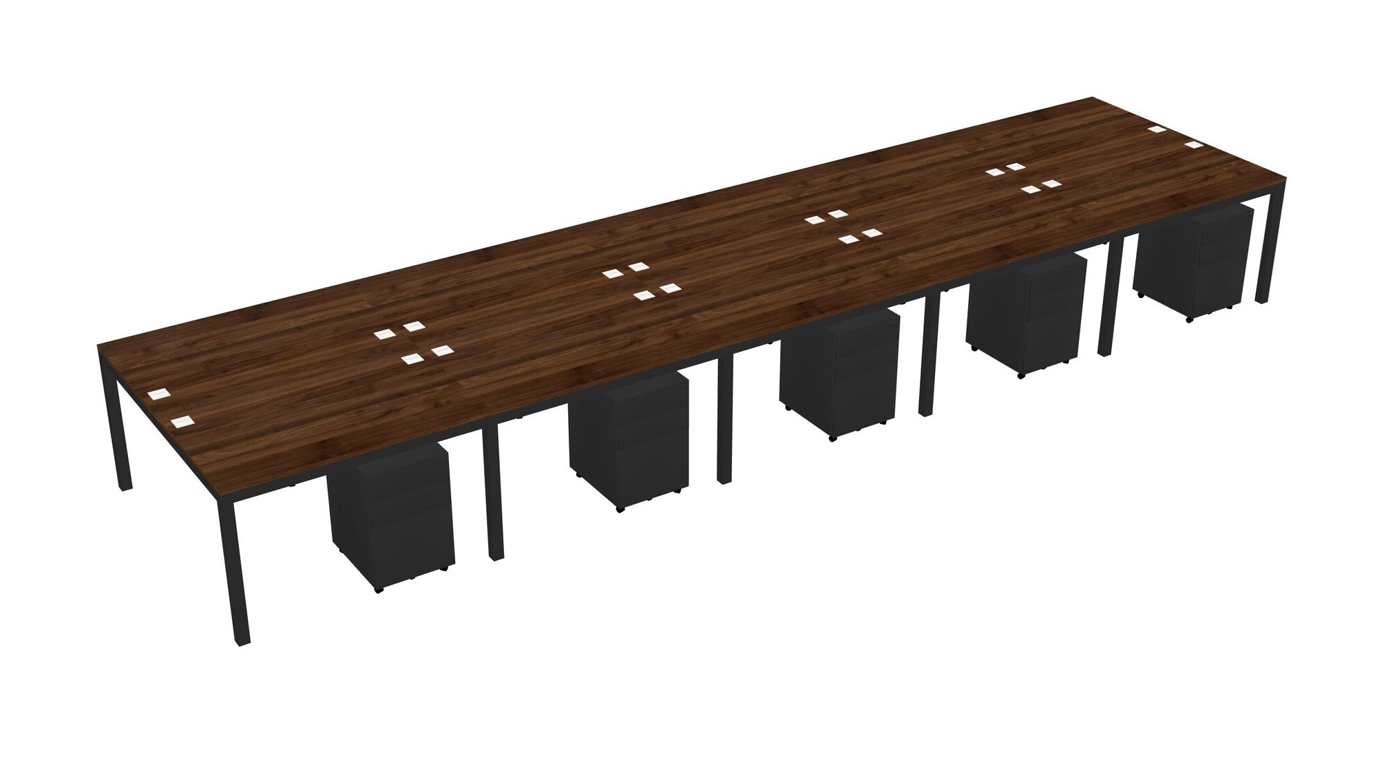 Columbia Walnut Shared Rectangular Office Desk With Metal Mobile Drawers For 10 Persons
