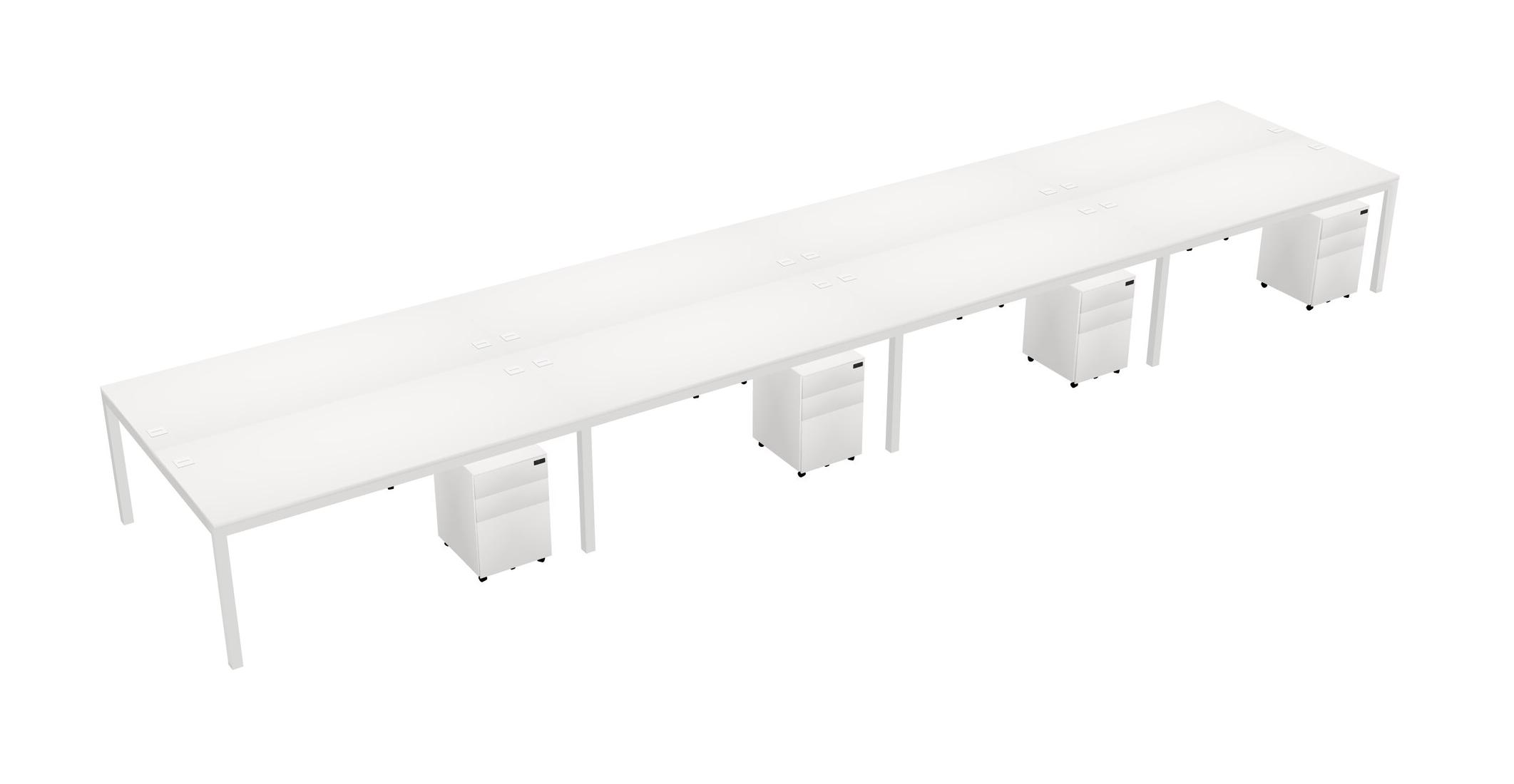 White Shared Rectangular Office Desk With Metal Mobile Drawers For 8 Persons