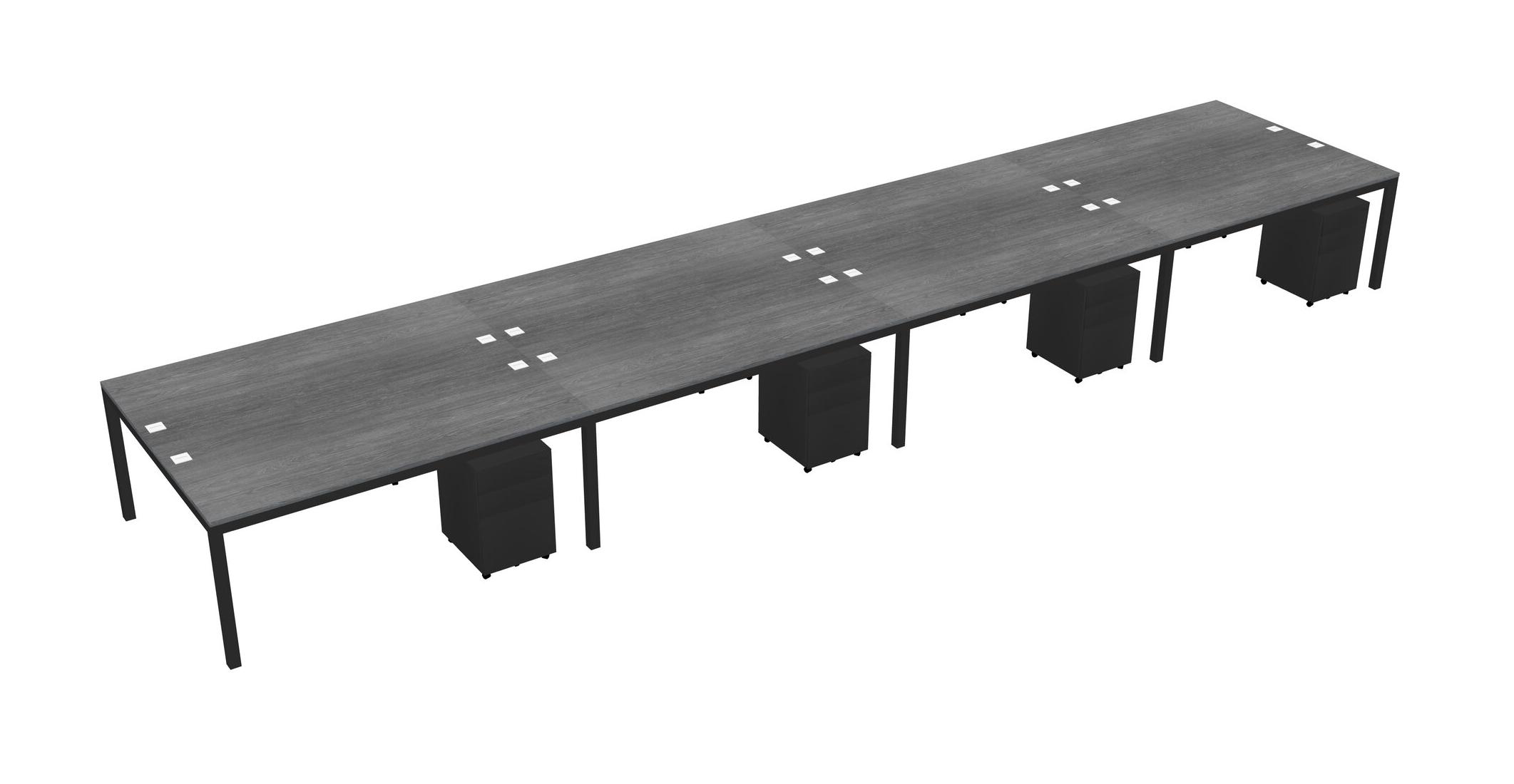 Grey Shared Rectangular Office Desk With Metal Mobile Drawers For 8 Persons