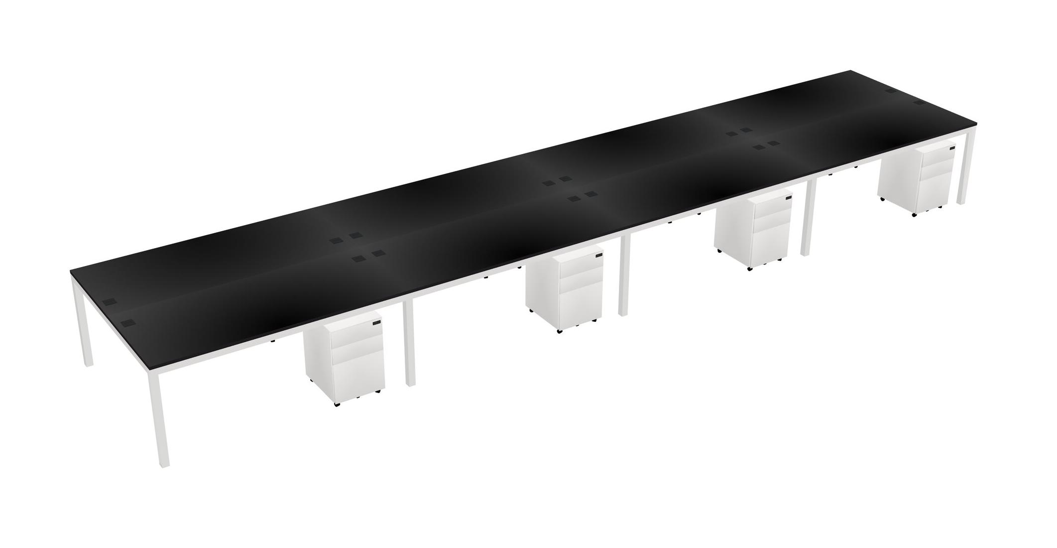 Black Shared Rectangular Office Desk With Metal Mobile Drawers For 8 Persons