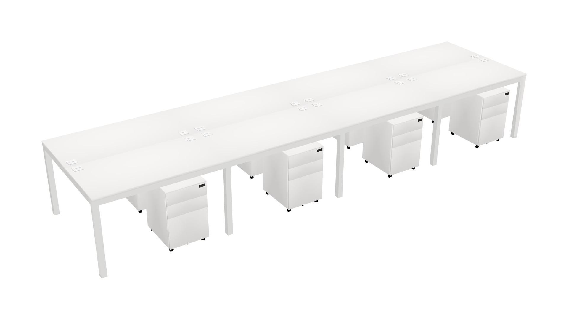 White Shared Rectangular Office Desk With Metal Mobile Drawers For 8 Persons
