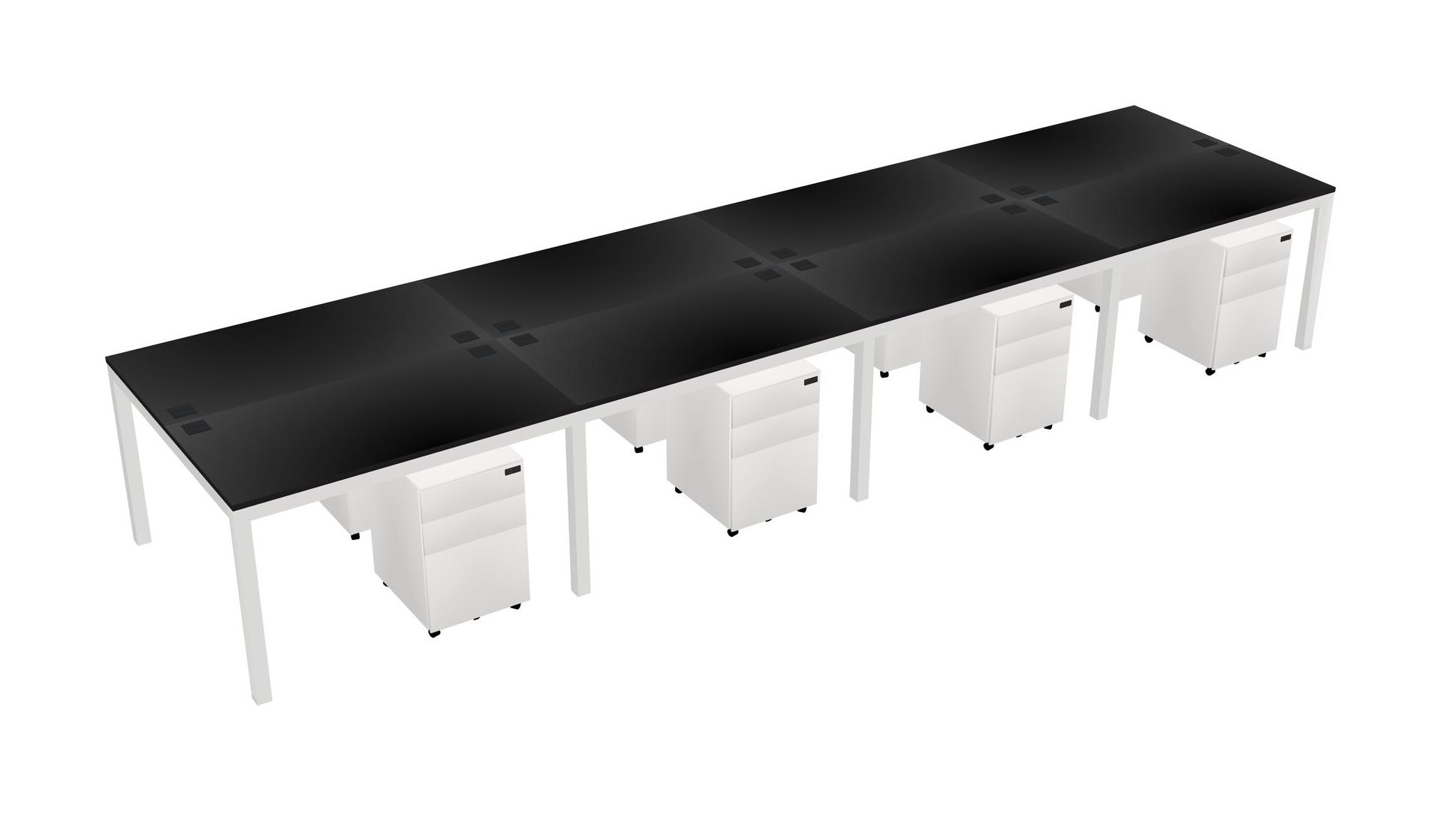 Black Shared Rectangular Office Desk With Metal Mobile Drawers For 8 Persons