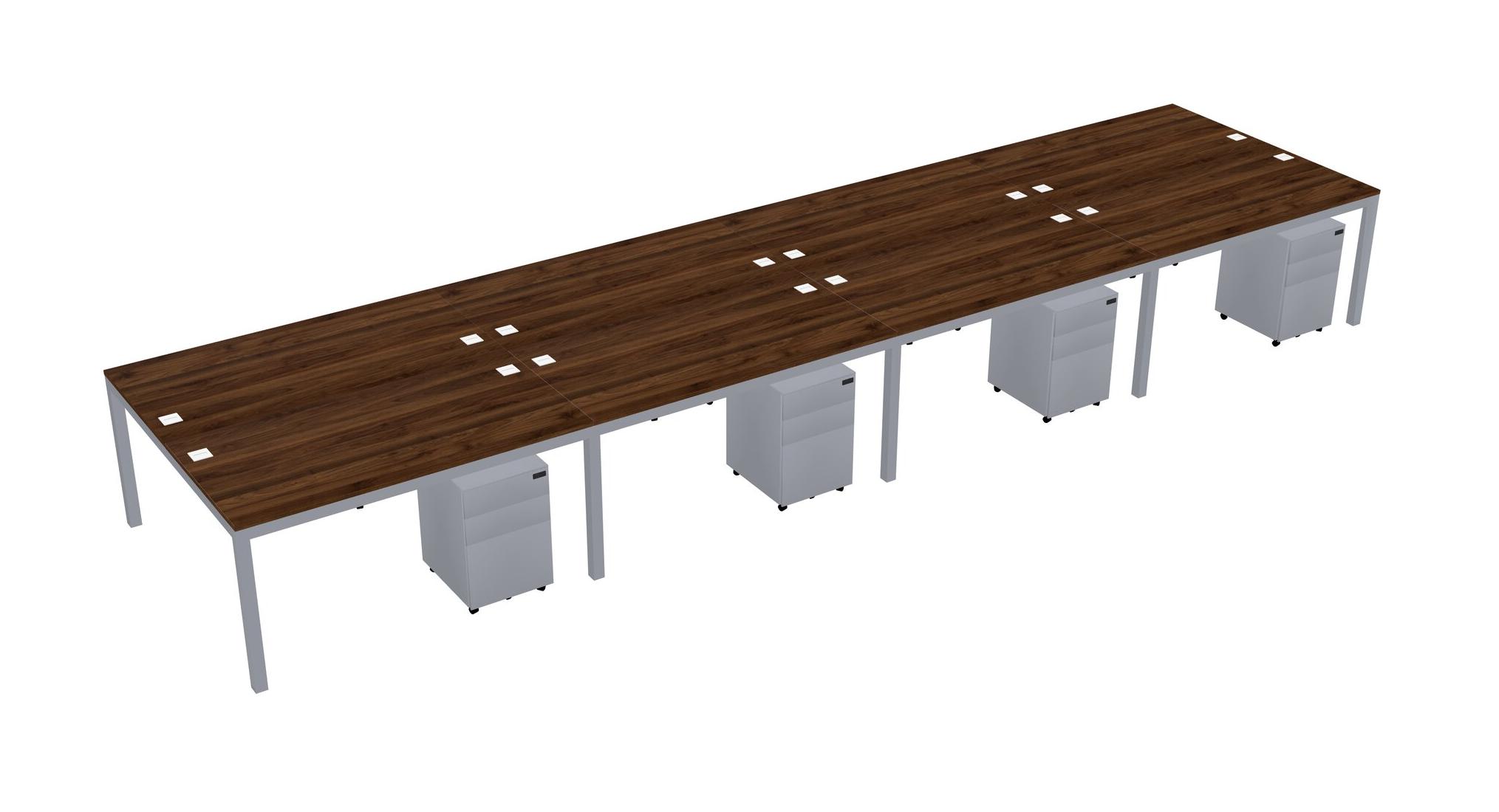 Columbia Walnut Shared Rectangular Office Desk With Metal Mobile Drawers For 8 Persons