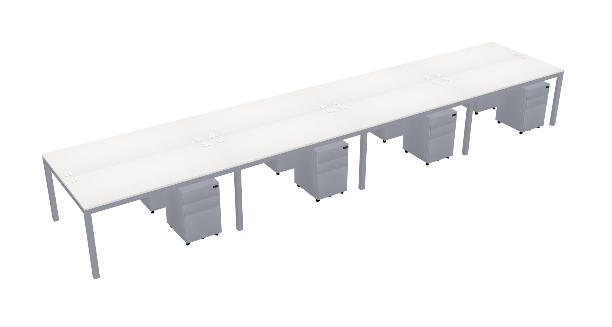 White Shared Rectangular Office Desk With Metal Mobile Drawers For 8 Persons