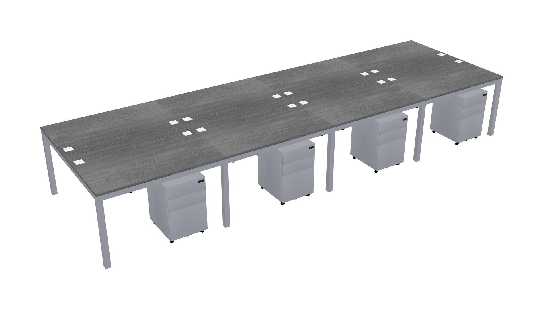 Grey Shared Rectangular Office Desk With Metal Mobile Drawers For 8 Persons