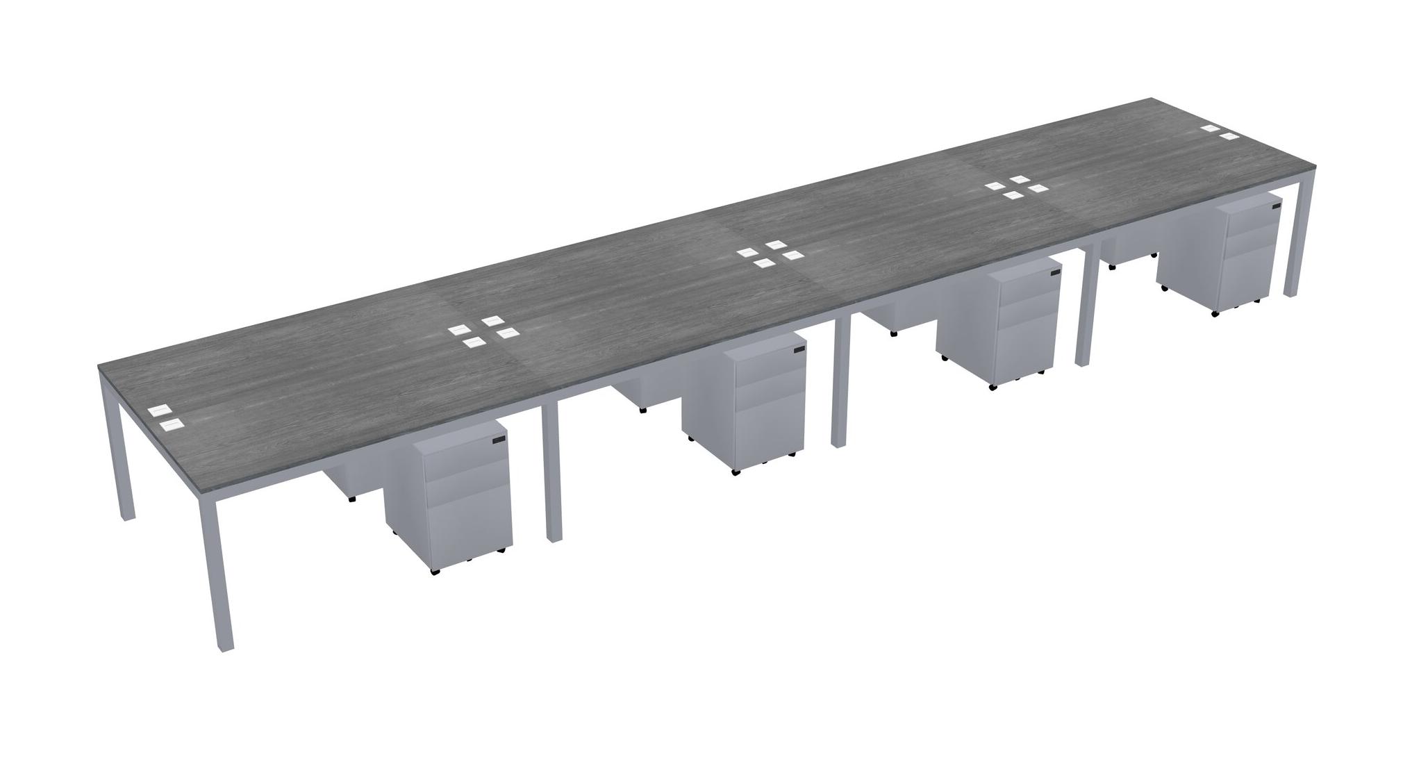 Grey Shared Rectangular Office Desk With Metal Mobile Drawers For 8 Persons