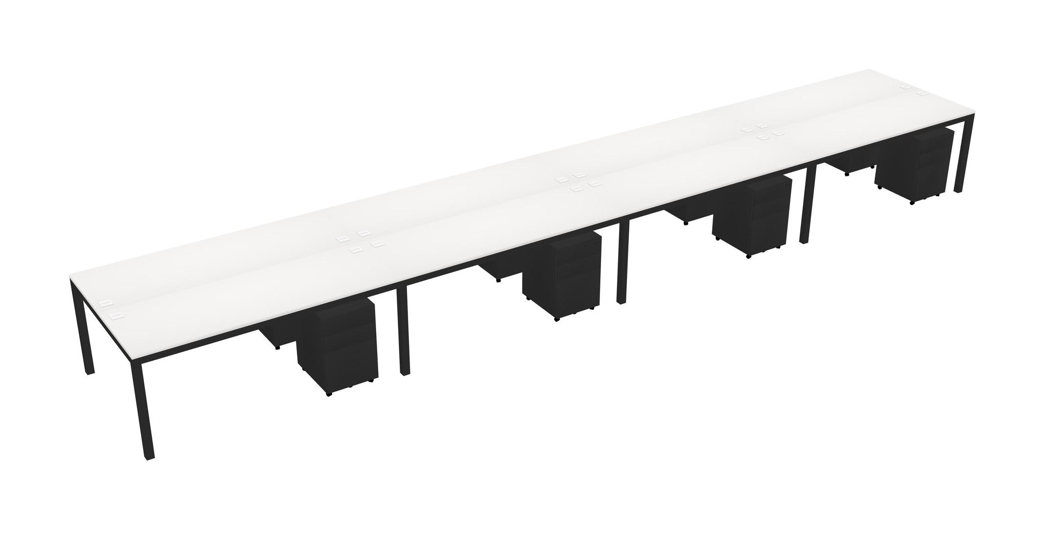 White Shared Rectangular Office Desk With Metal Mobile Drawers For 8 Persons