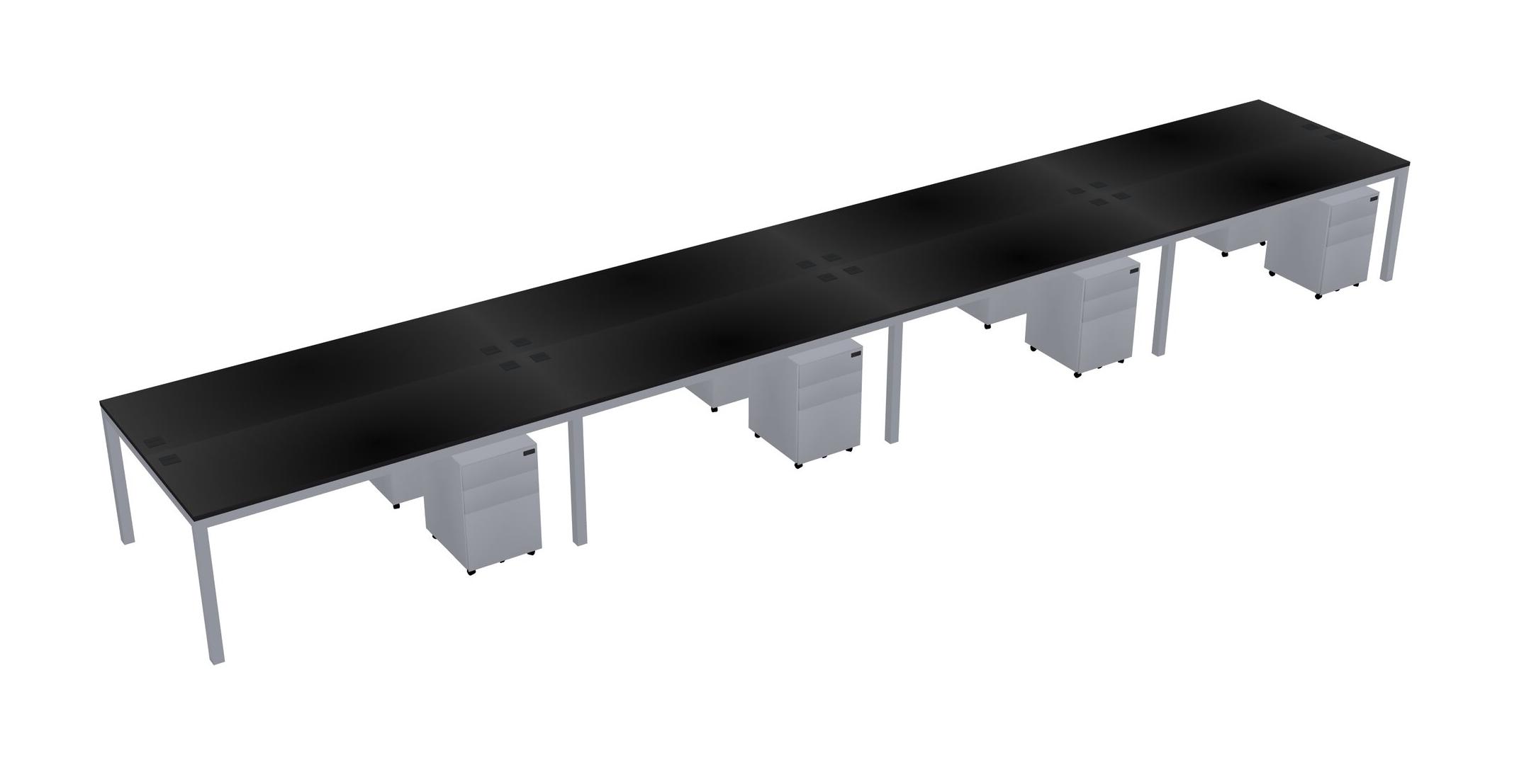 Black Shared Rectangular Office Desk With Metal Mobile Drawers For 8 Persons