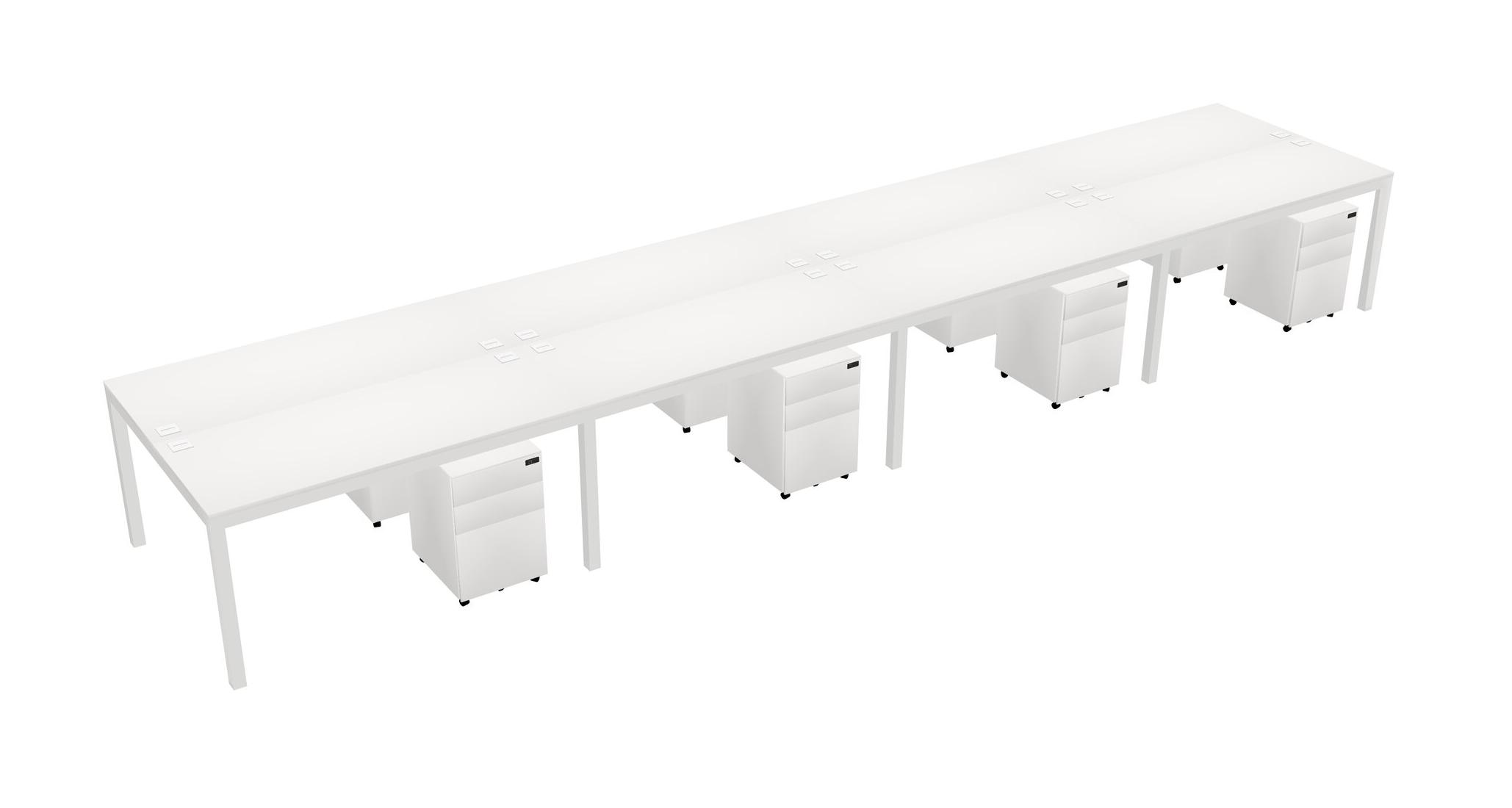 White Shared Rectangular Office Desk With Metal Mobile Drawers For 8 Persons