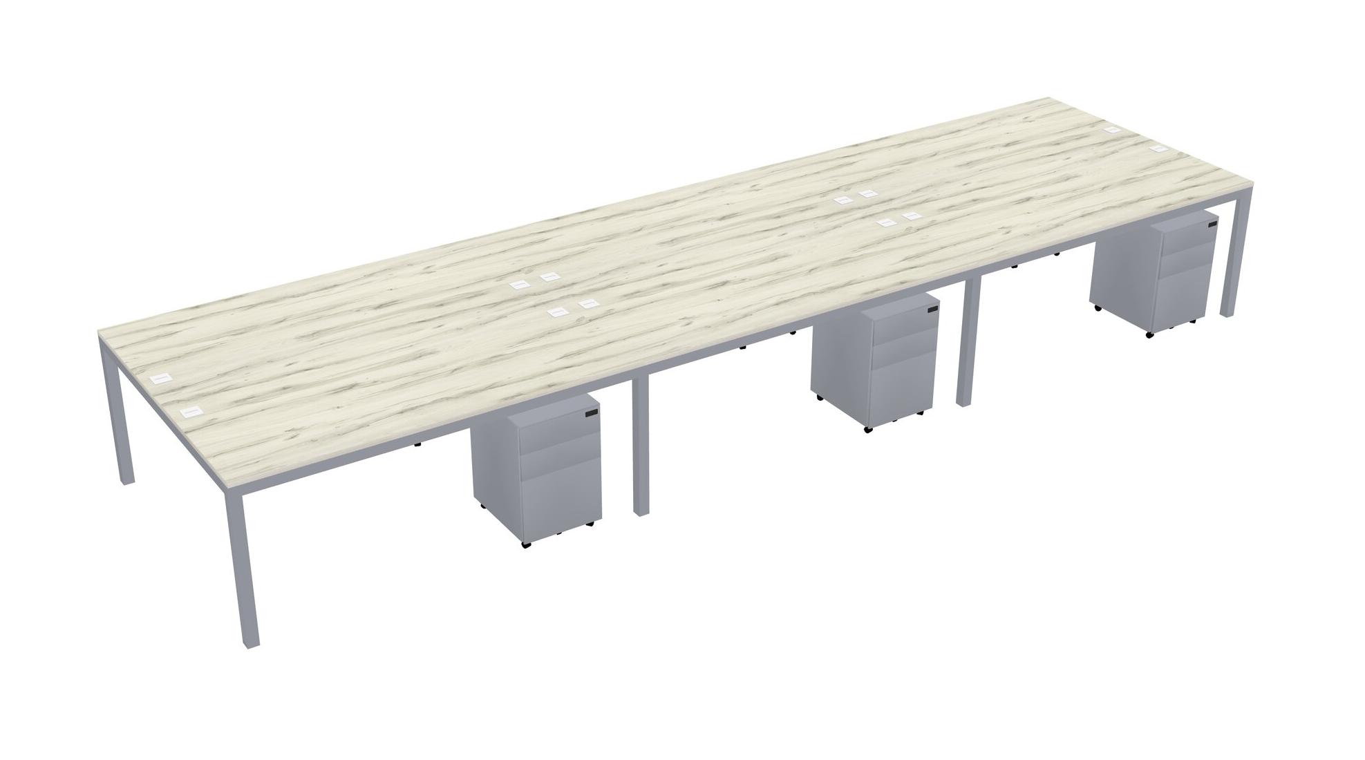 Heinne Holz Shared Rectangular Office Desk With Metal Mobile Drawers For 6 Persons