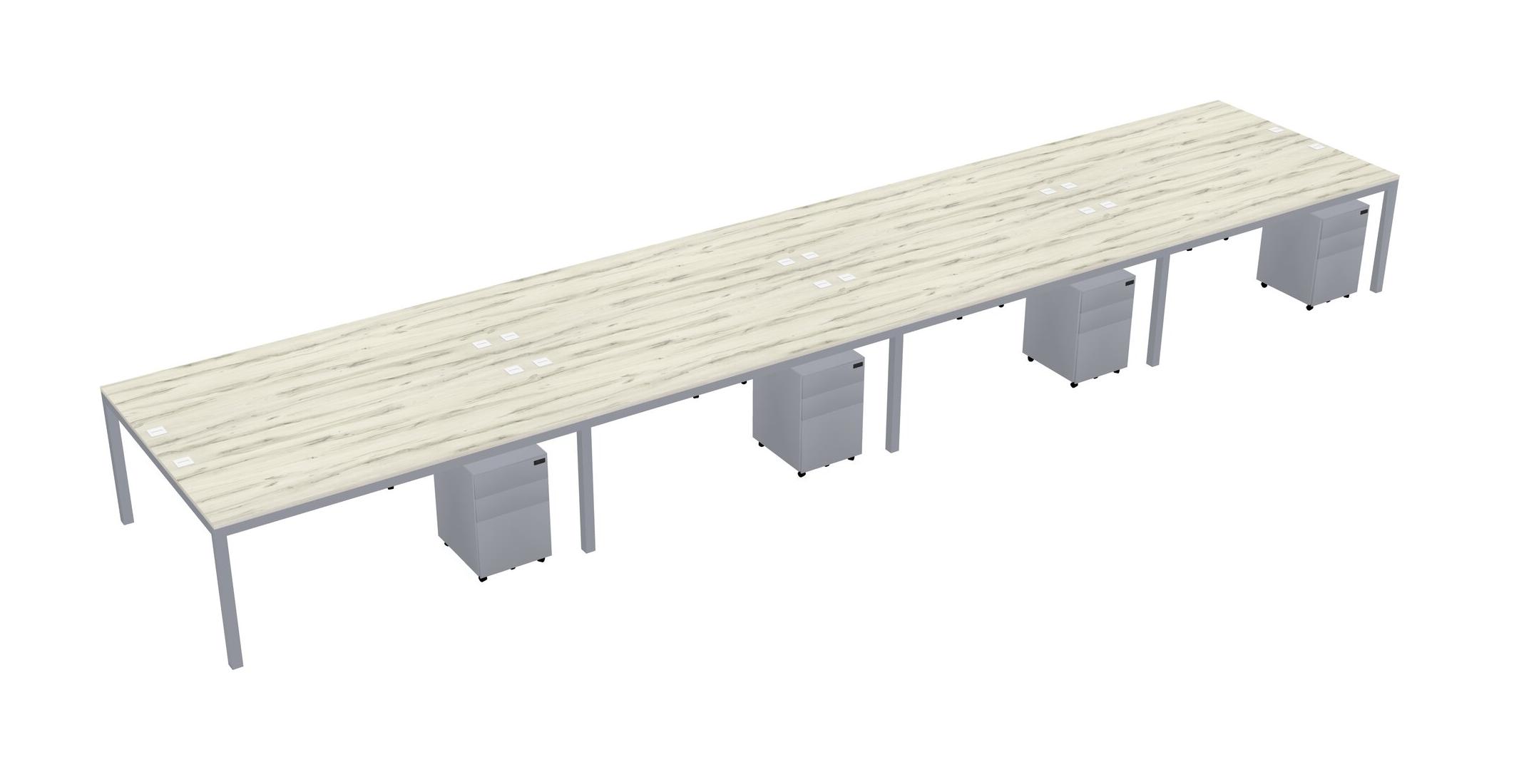 Heinne Holz Shared Rectangular Office Desk With Metal Mobile Drawers For 8 Persons