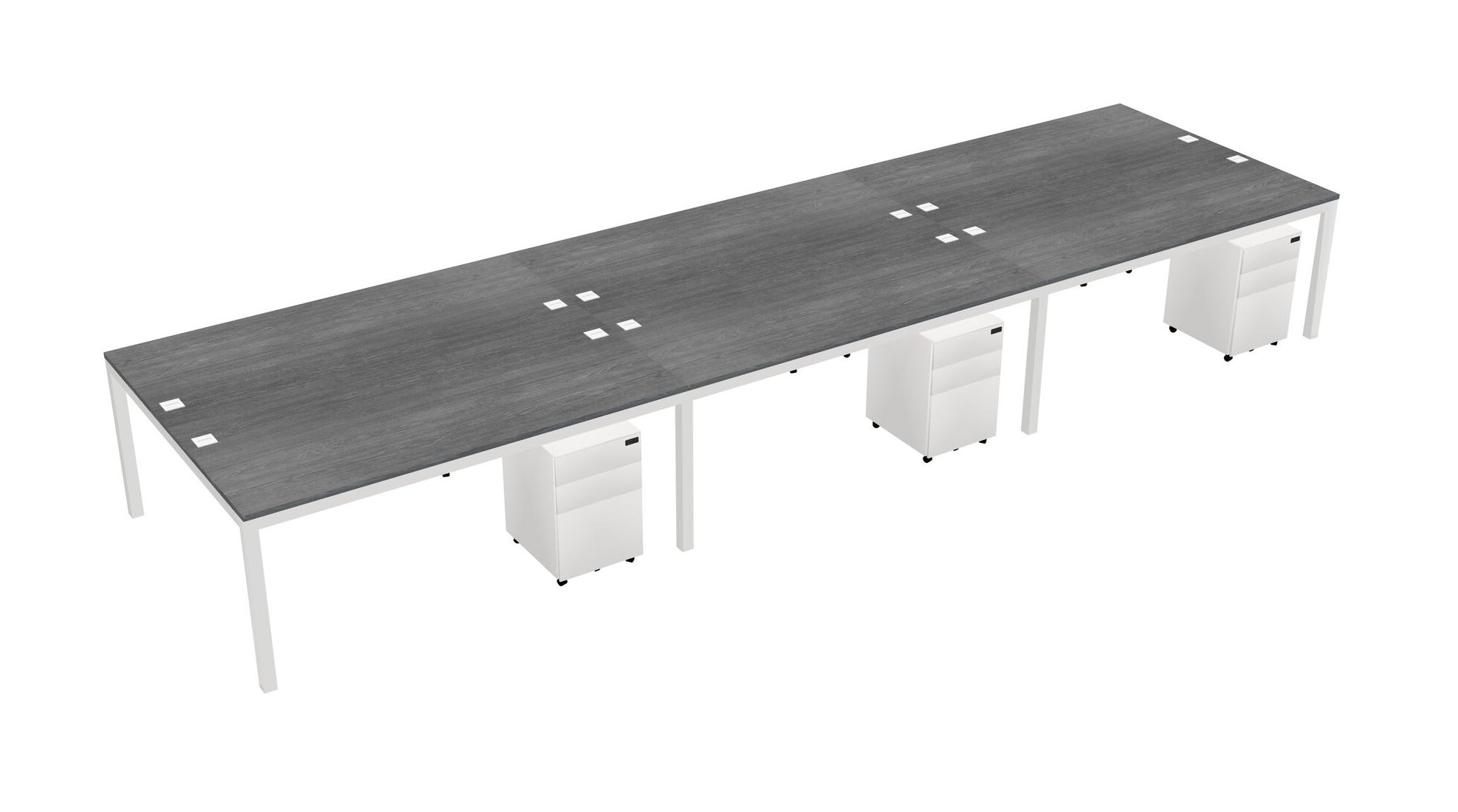 Grey Shared Rectangular Office Desk With Metal Mobile Drawers For 6 Persons