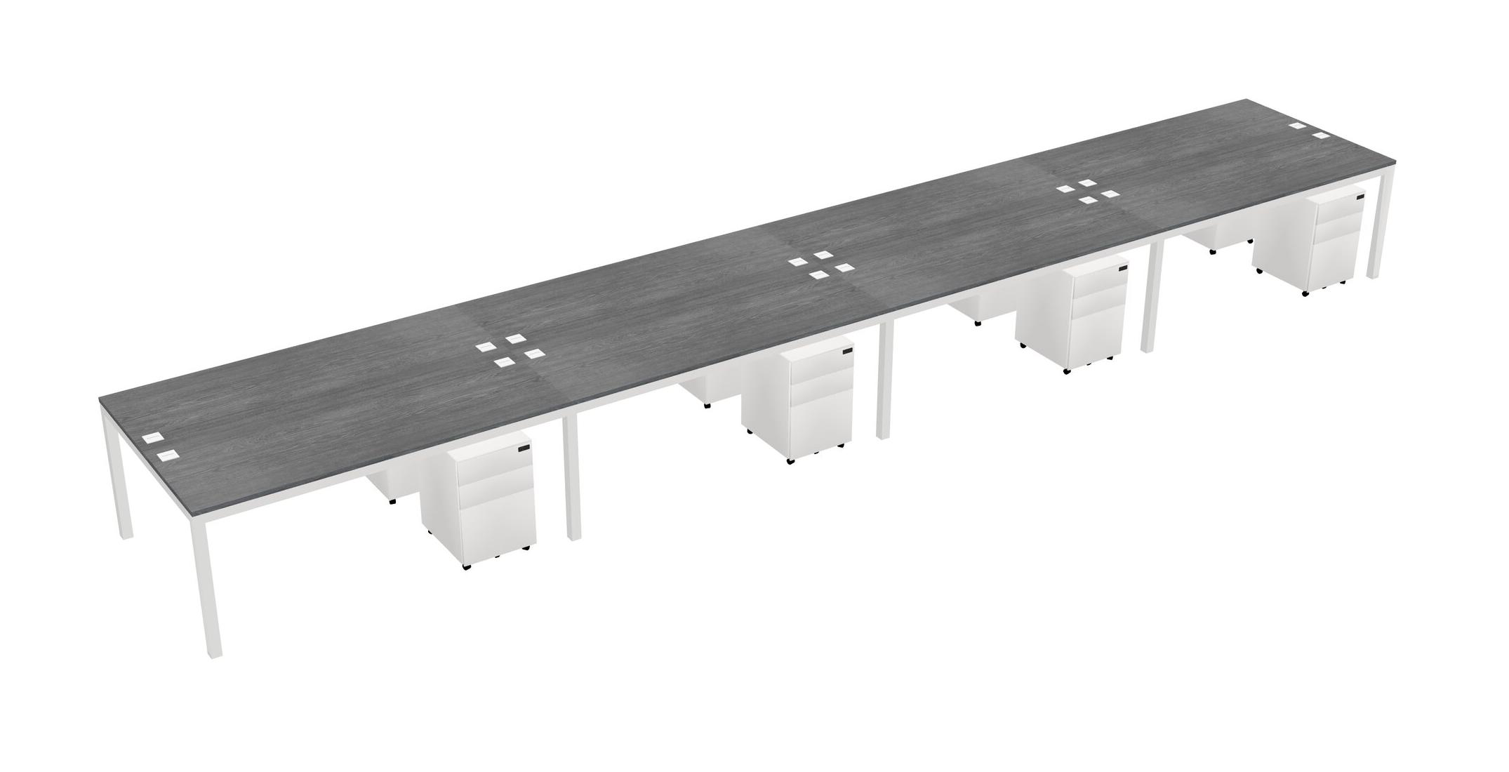 Grey Shared Rectangular Office Desk With Metal Mobile Drawers For 8 Persons