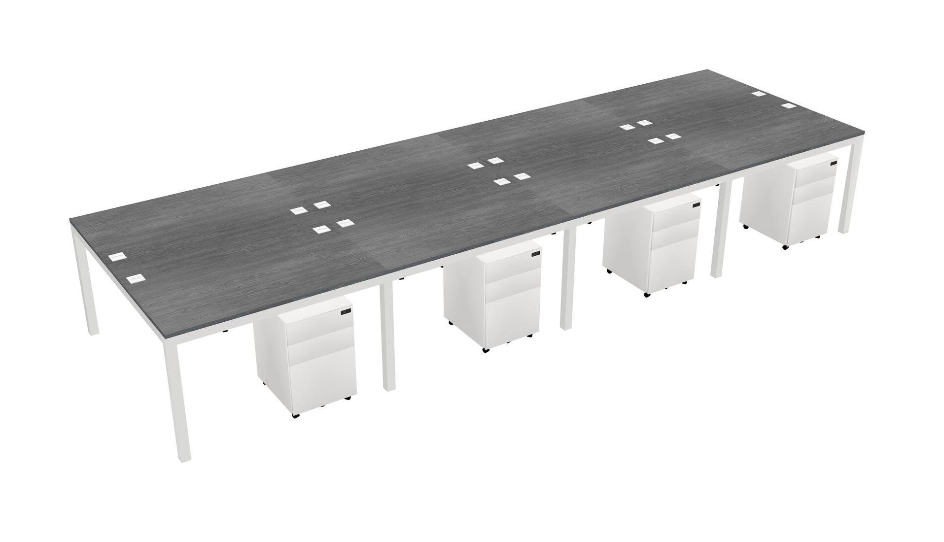 Grey Shared Rectangular Office Desk With Metal Mobile Drawers For 8 Persons