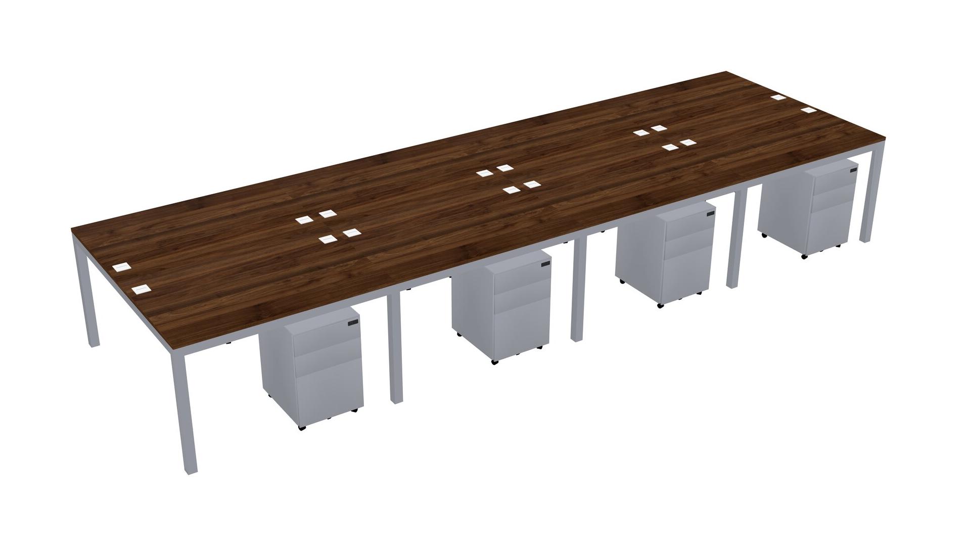 Columbia Walnut Shared Rectangular Office Desk With Metal Mobile Drawers For 8 Persons