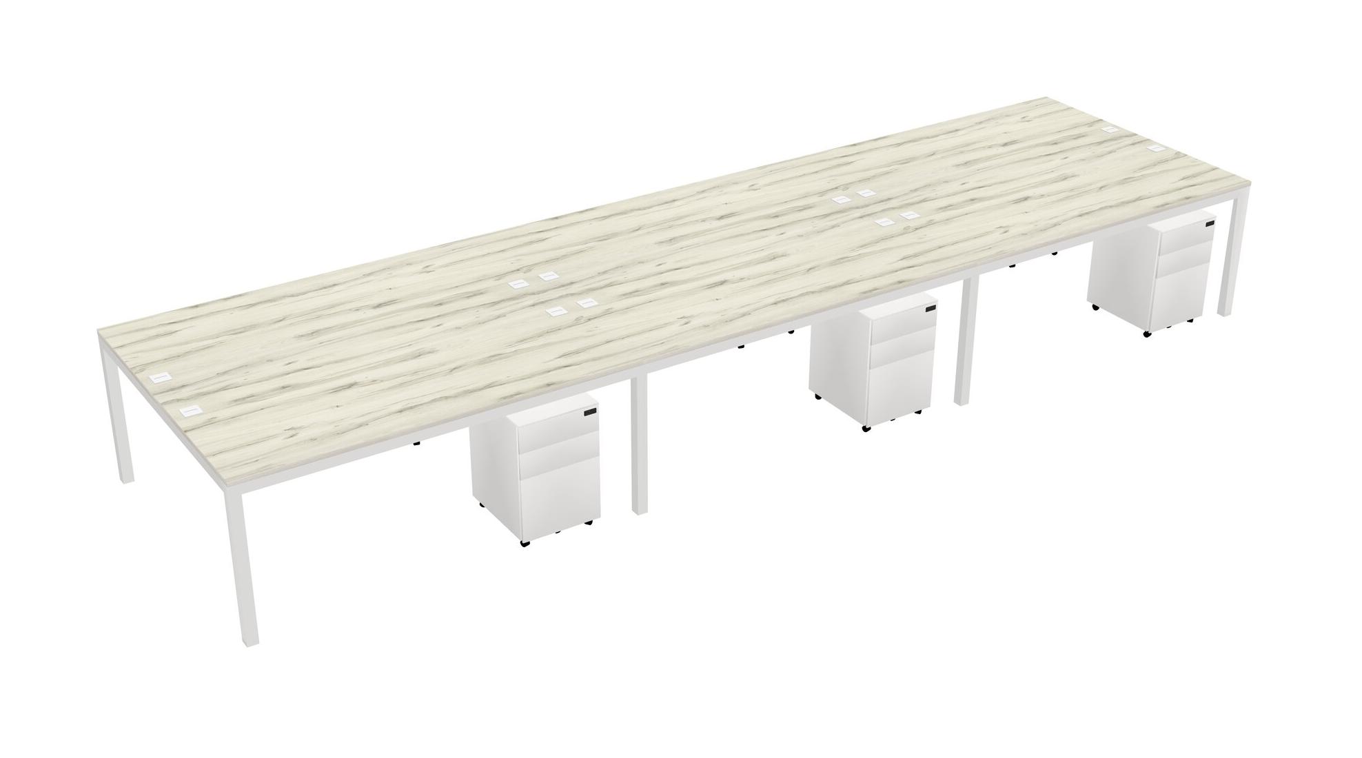 Heinne Holz Shared Rectangular Office Desk With Metal Mobile Drawers For 6 Persons