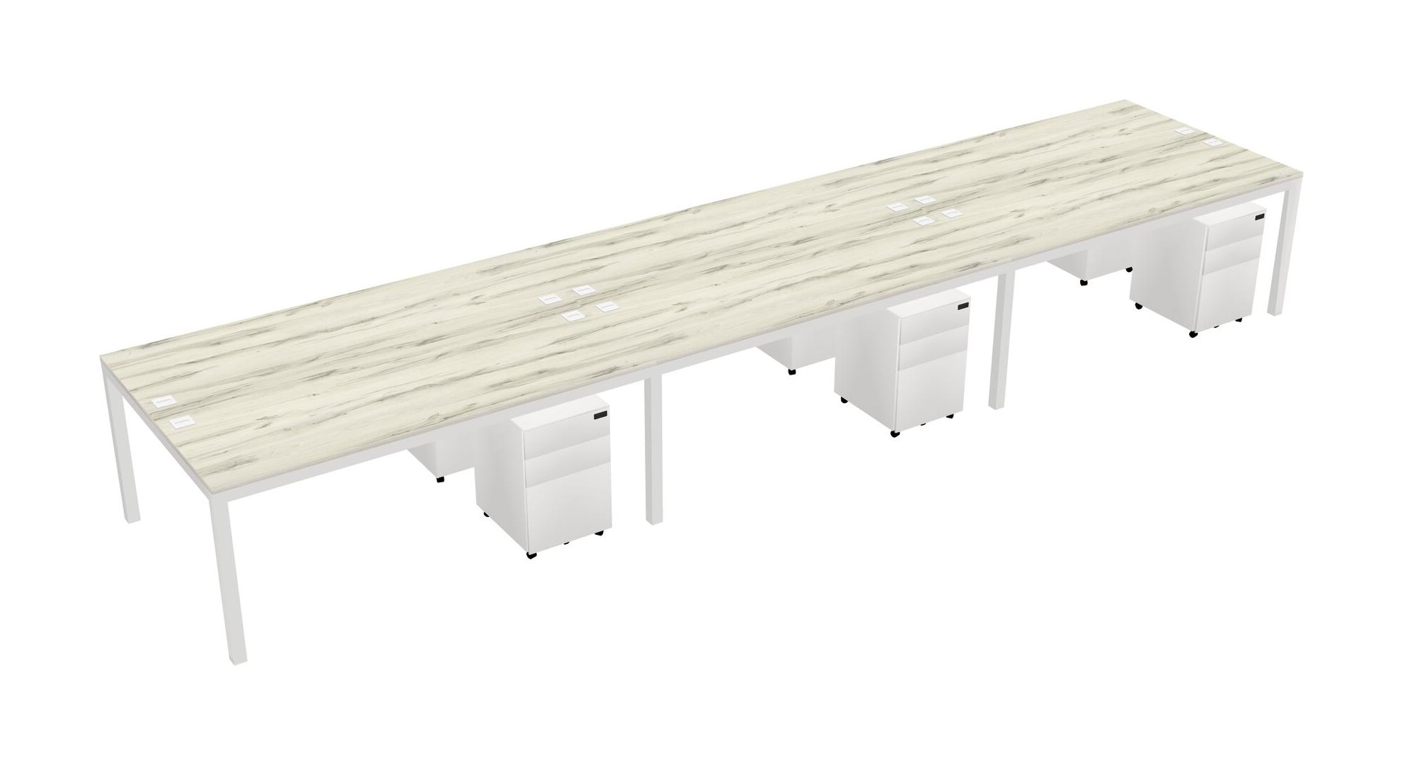 Heinne Holz Shared Rectangular Office Desk With Metal Mobile Drawers For 6 Persons