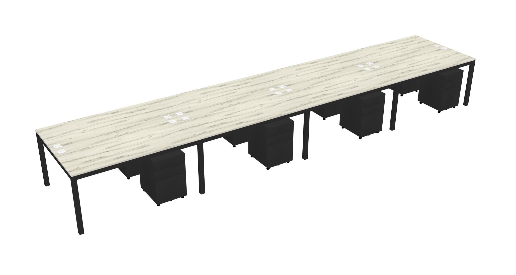 Heinne Holz Shared Rectangular Office Desk With Metal Mobile Drawers For 8 Persons