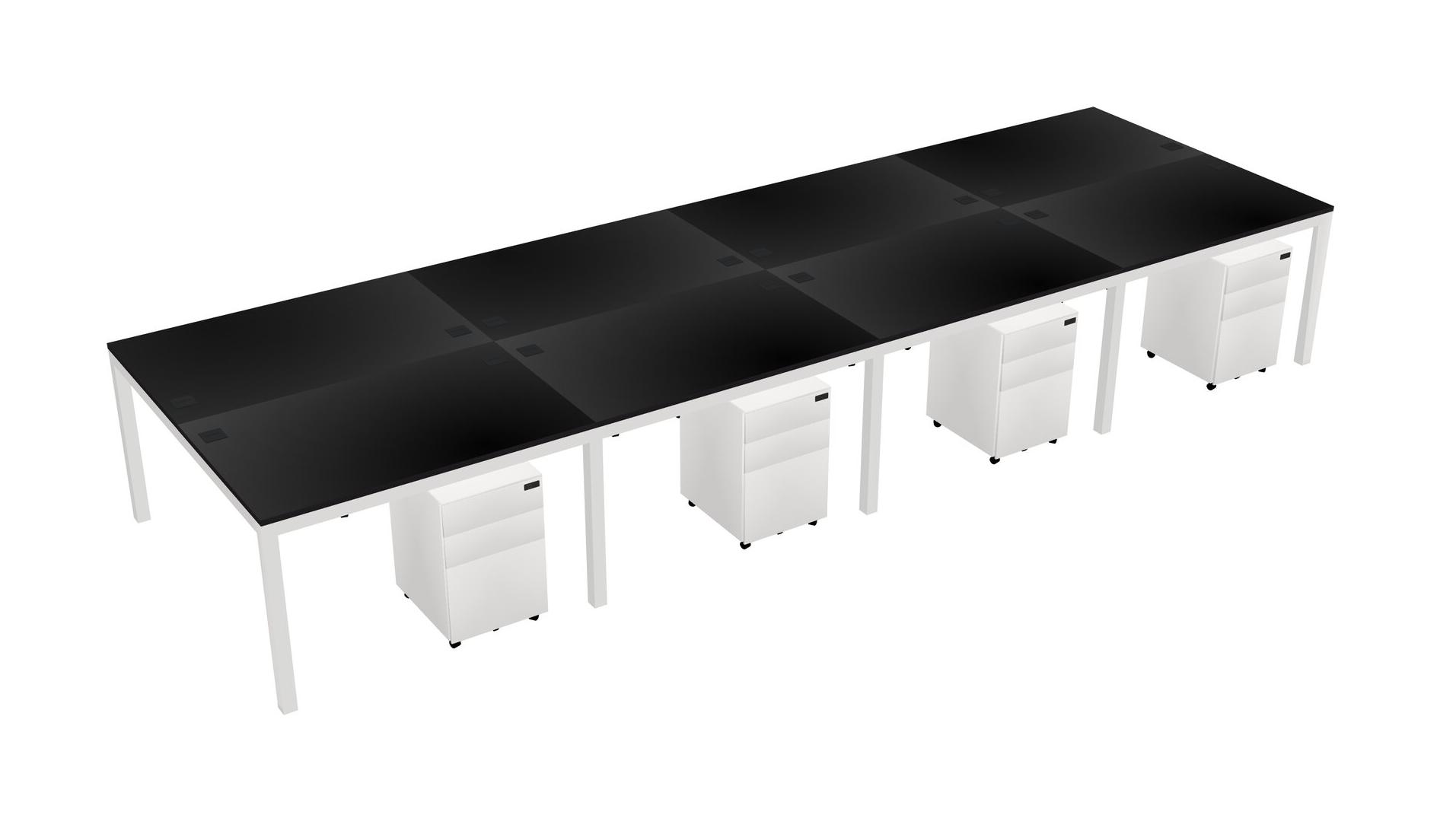 Black Shared Rectangular Office Desk With Metal Mobile Drawers For 8 Persons