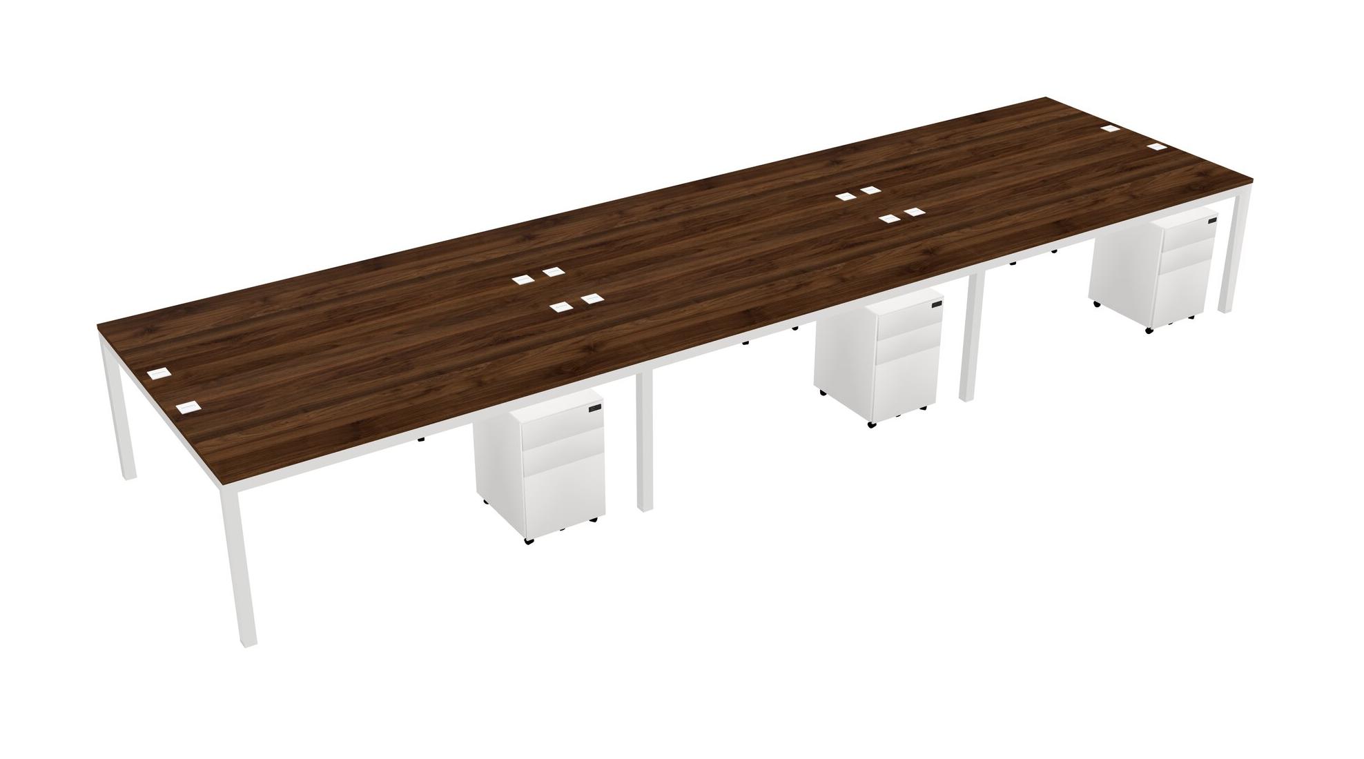 Columbia Walnut Shared Rectangular Office Desk With Metal Mobile Drawers For 6 Persons