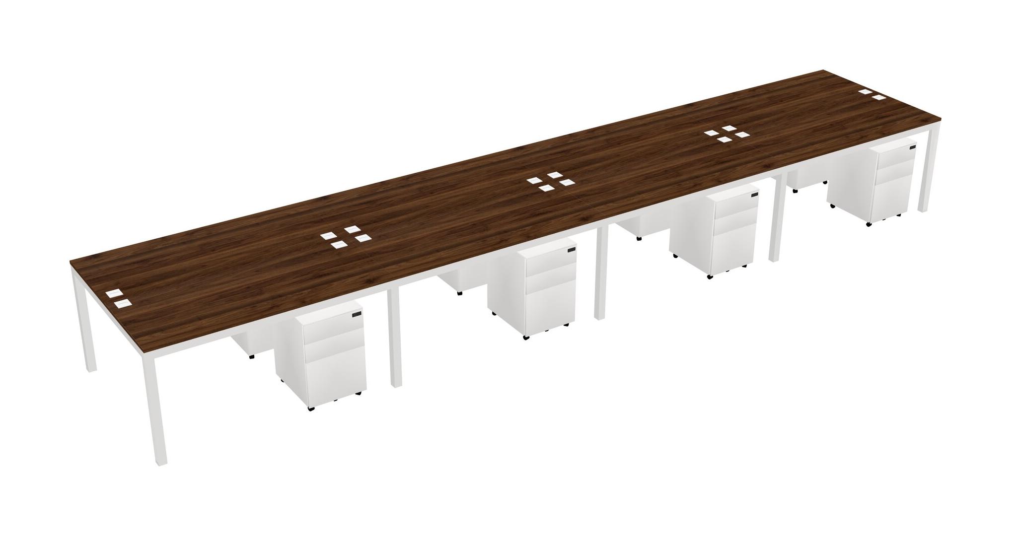 Columbia Walnut Shared Rectangular Office Desk With Metal Mobile Drawers For 8 Persons