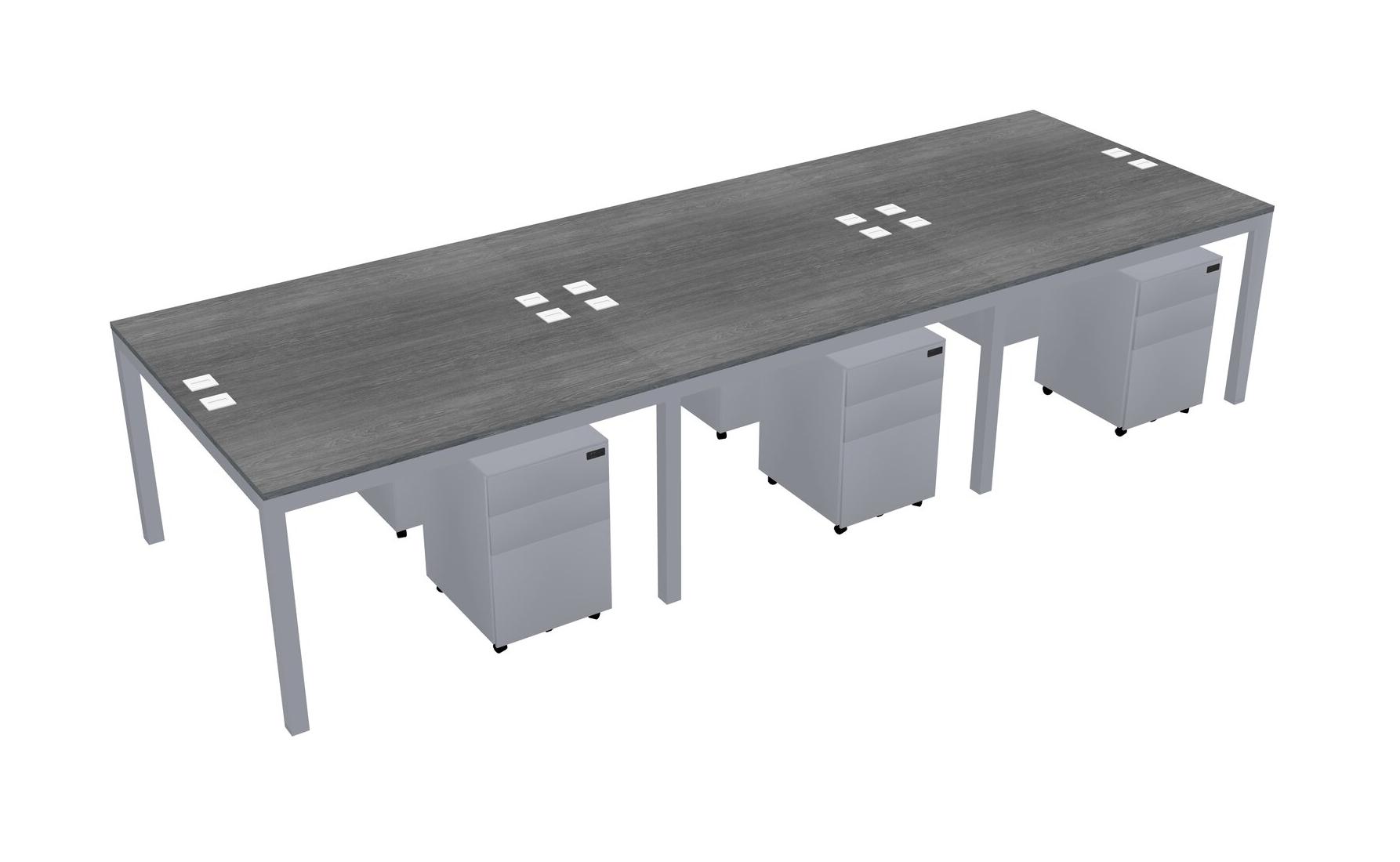Grey Shared Rectangular Office Desk With Metal Mobile Drawers For 6 Persons