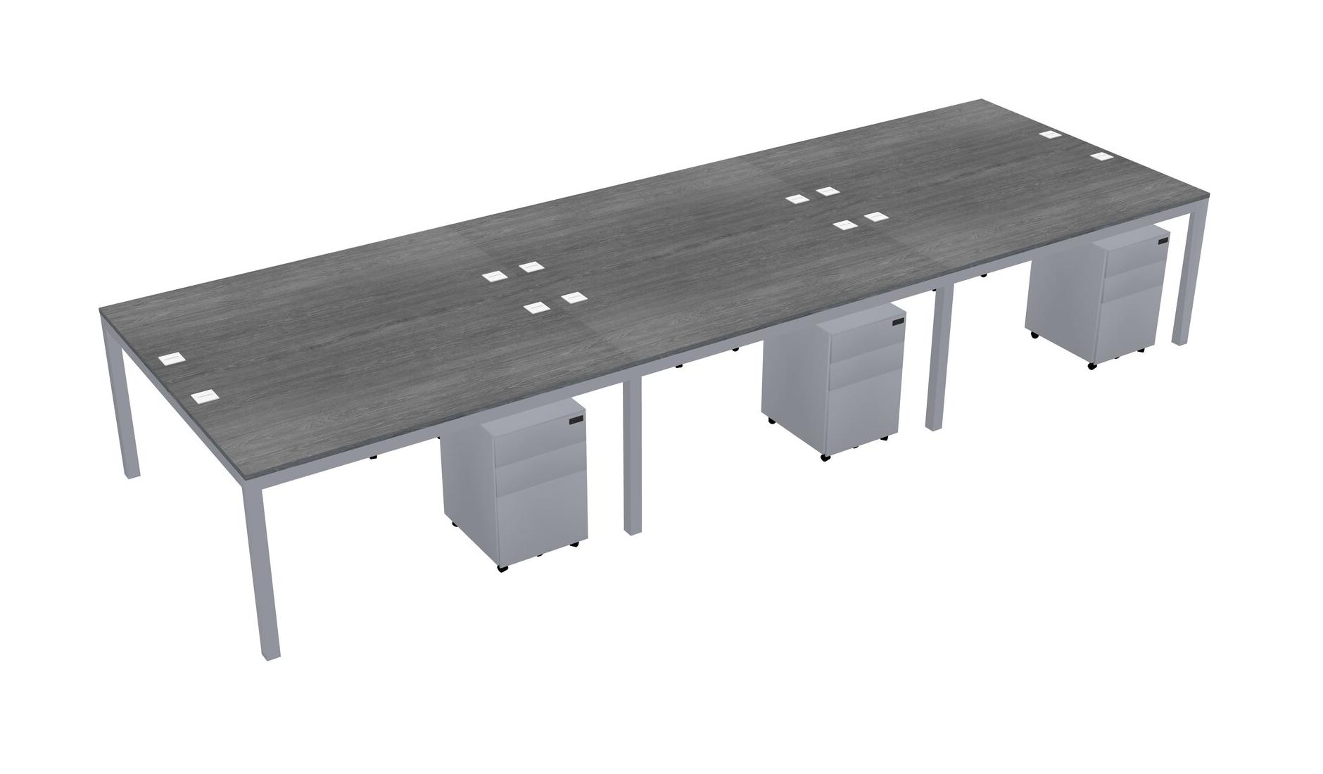 Grey Shared Rectangular Office Desk With Metal Mobile Drawers For 6 Persons