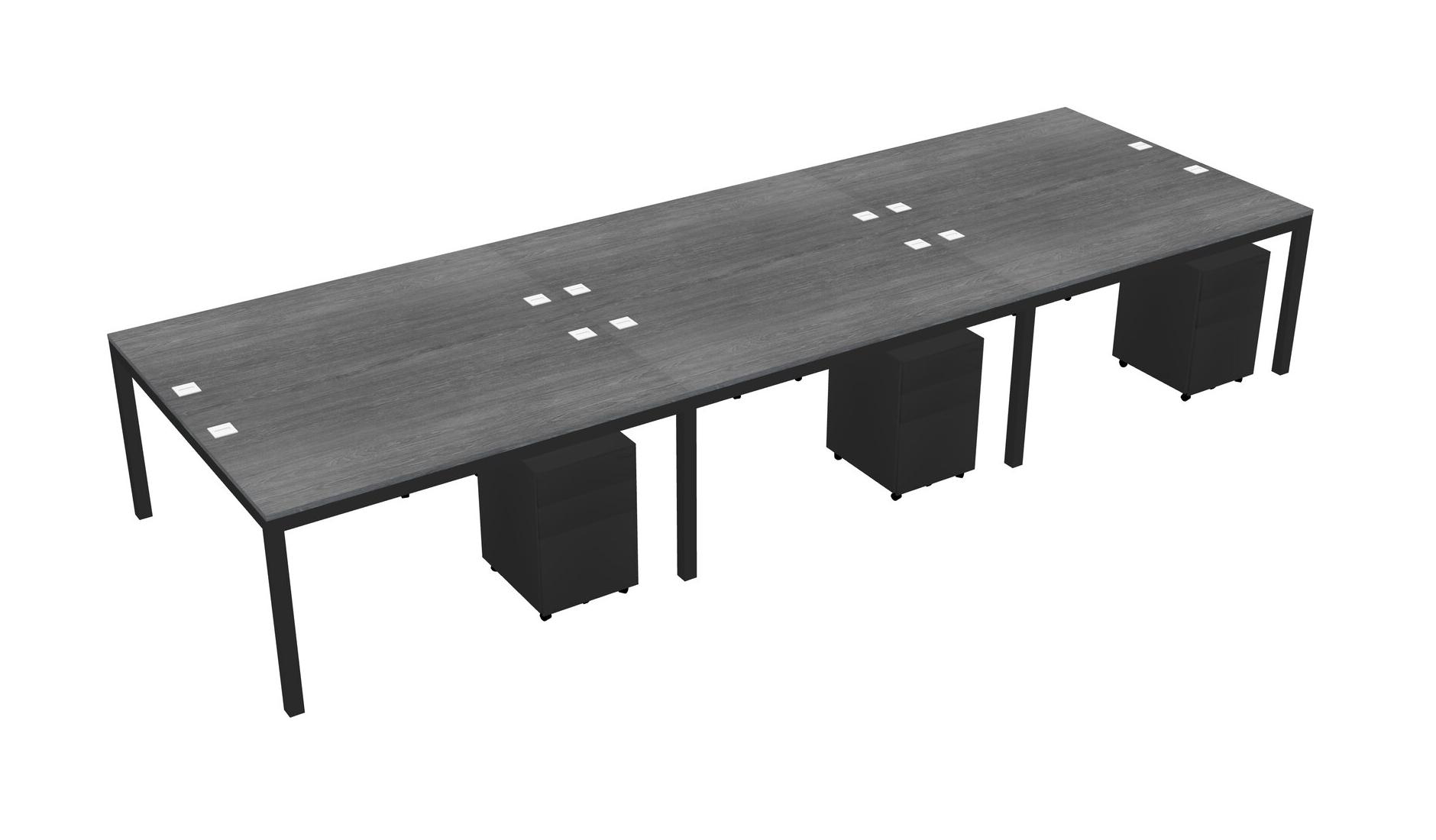Grey Shared Rectangular Office Desk With Metal Mobile Drawers For 6 Persons