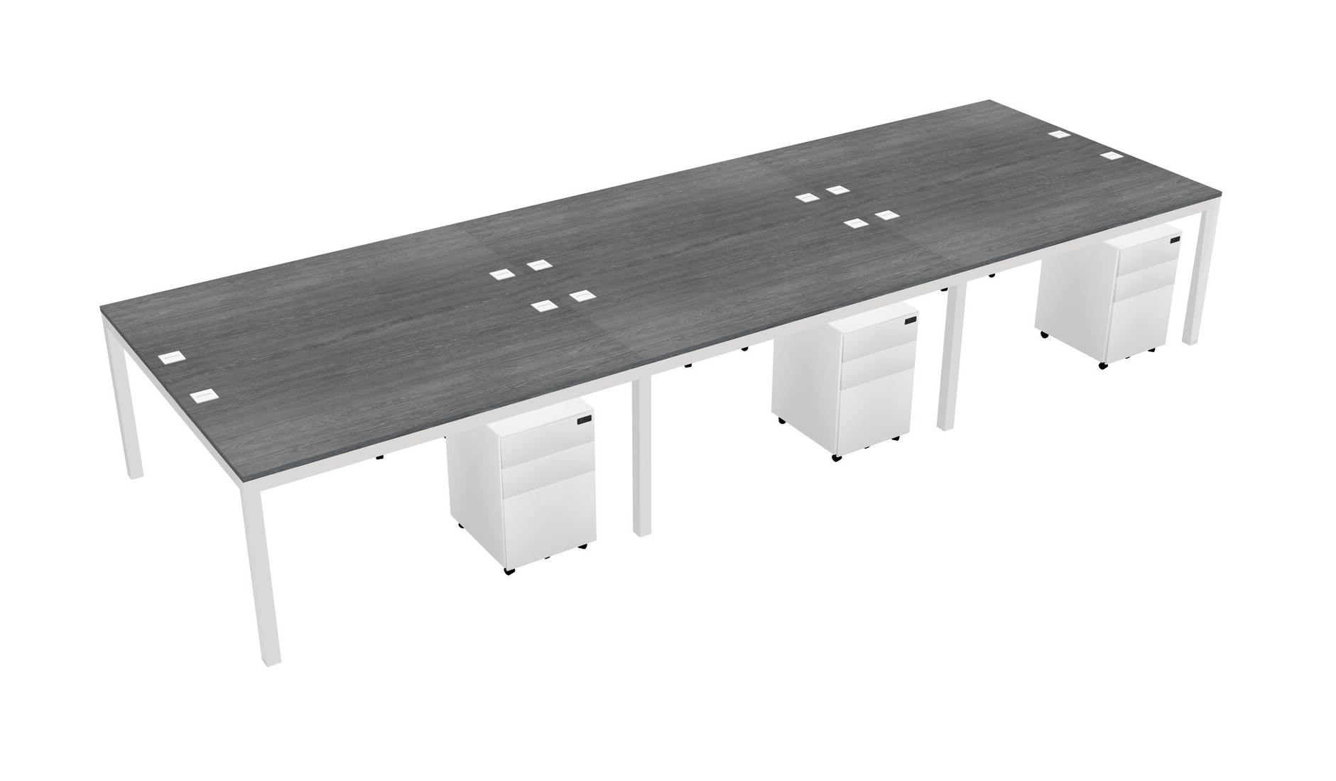 Grey Shared Rectangular Office Desk With Metal Mobile Drawers For 6 Persons