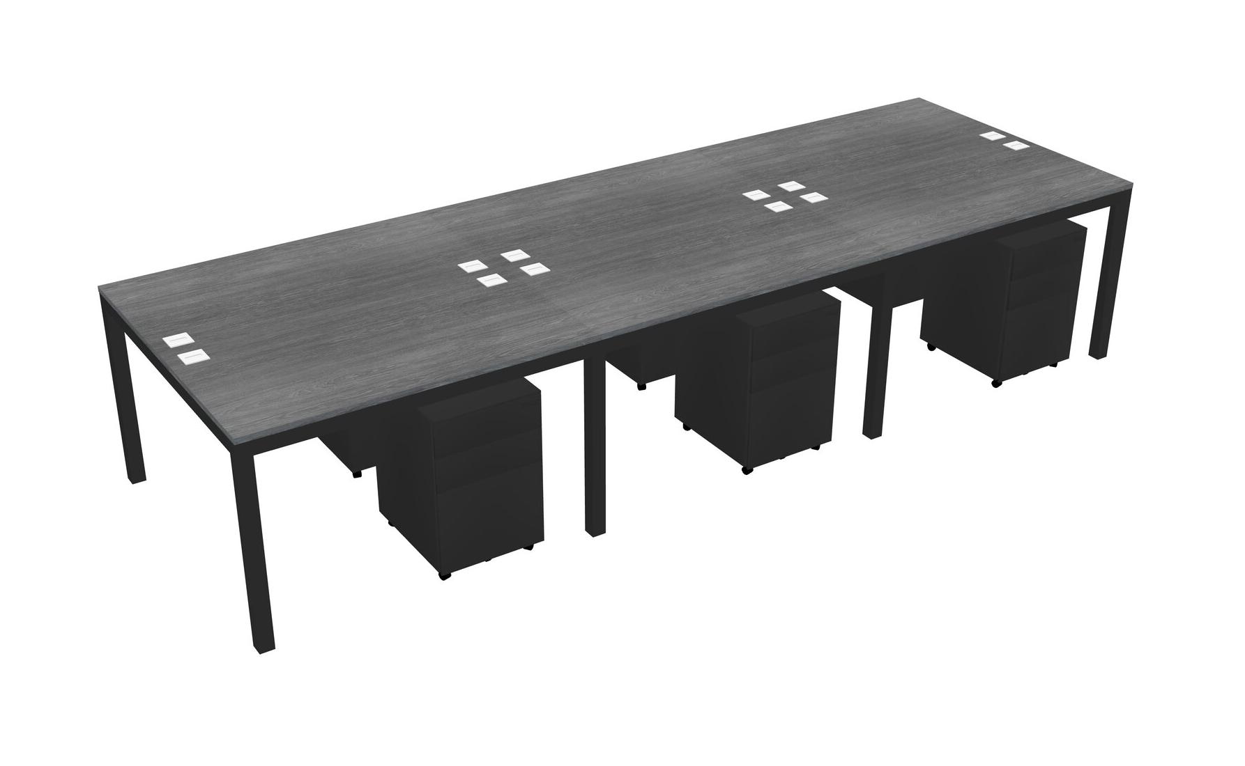 Grey Shared Rectangular Office Desk With Metal Mobile Drawers For 6 Persons