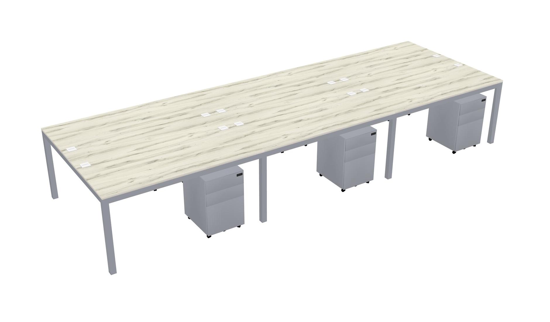 Heinne Holz Shared Rectangular Office Desk With Metal Mobile Drawers For 6 Persons