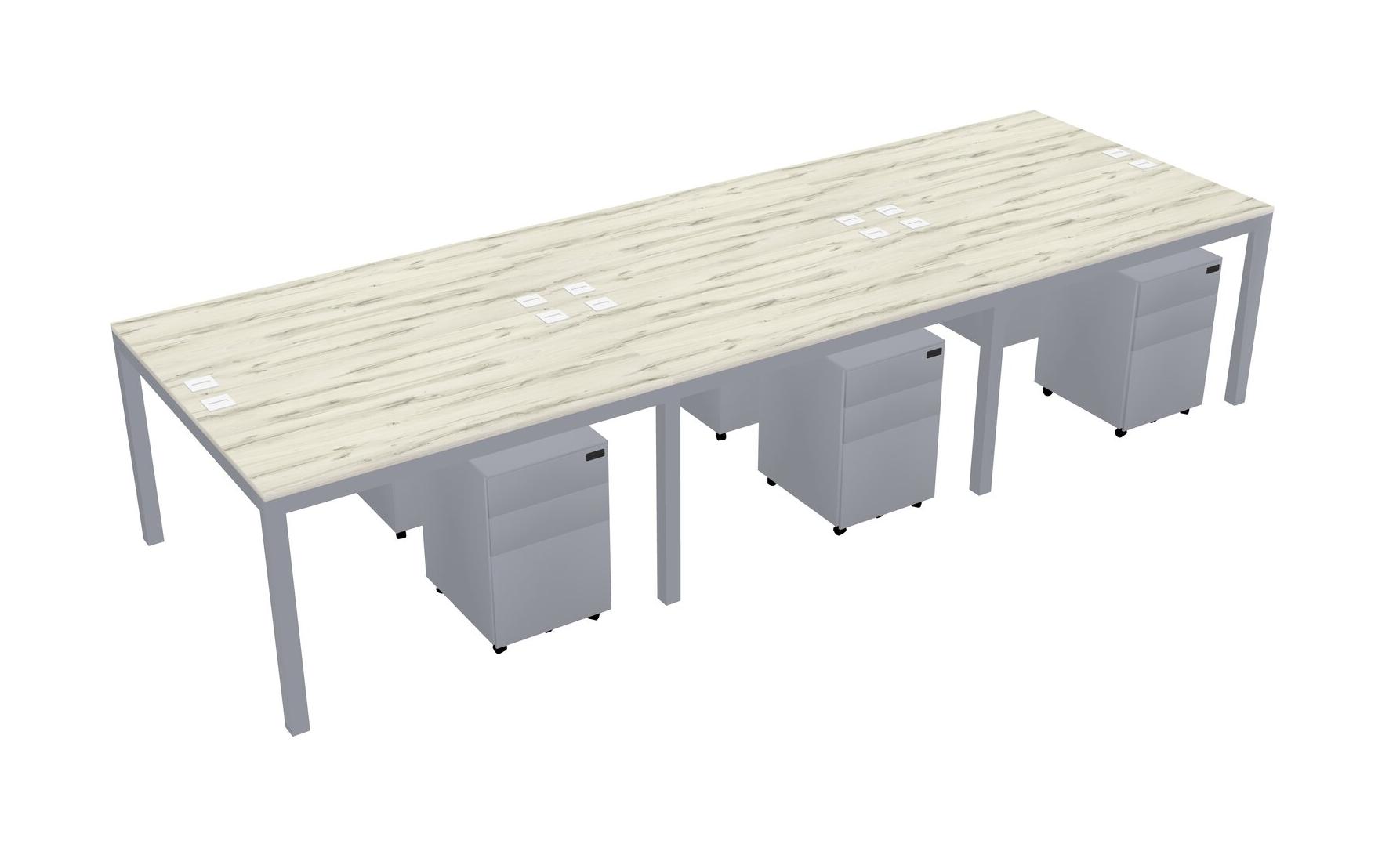 Heinne Holz Shared Rectangular Office Desk With Metal Mobile Drawers For 6 Persons