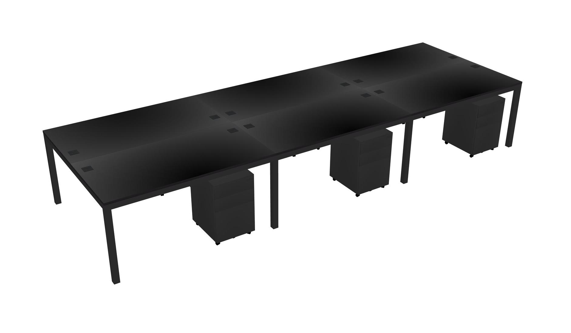 Black Shared Rectangular Office Desk With Metal Mobile Drawers For 6 Persons