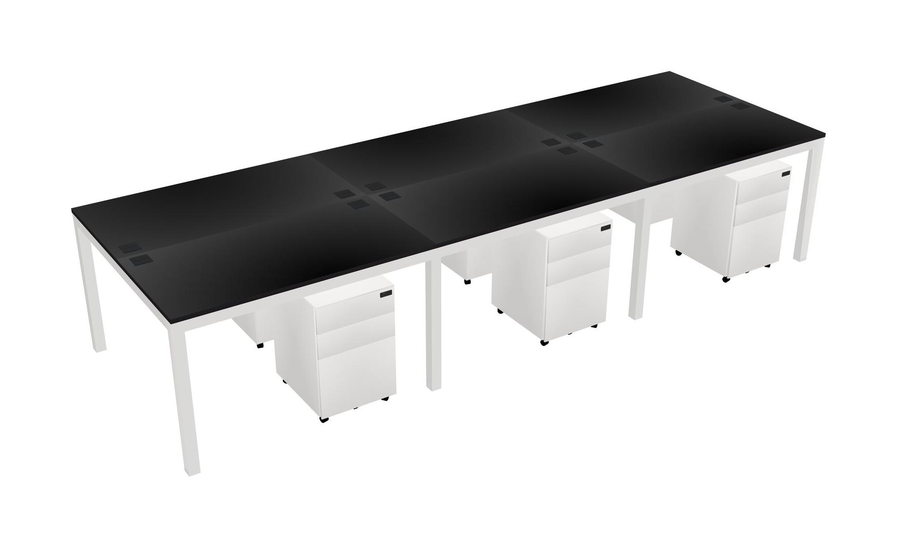 Black Shared Rectangular Office Desk With Metal Mobile Drawers For 6 Persons
