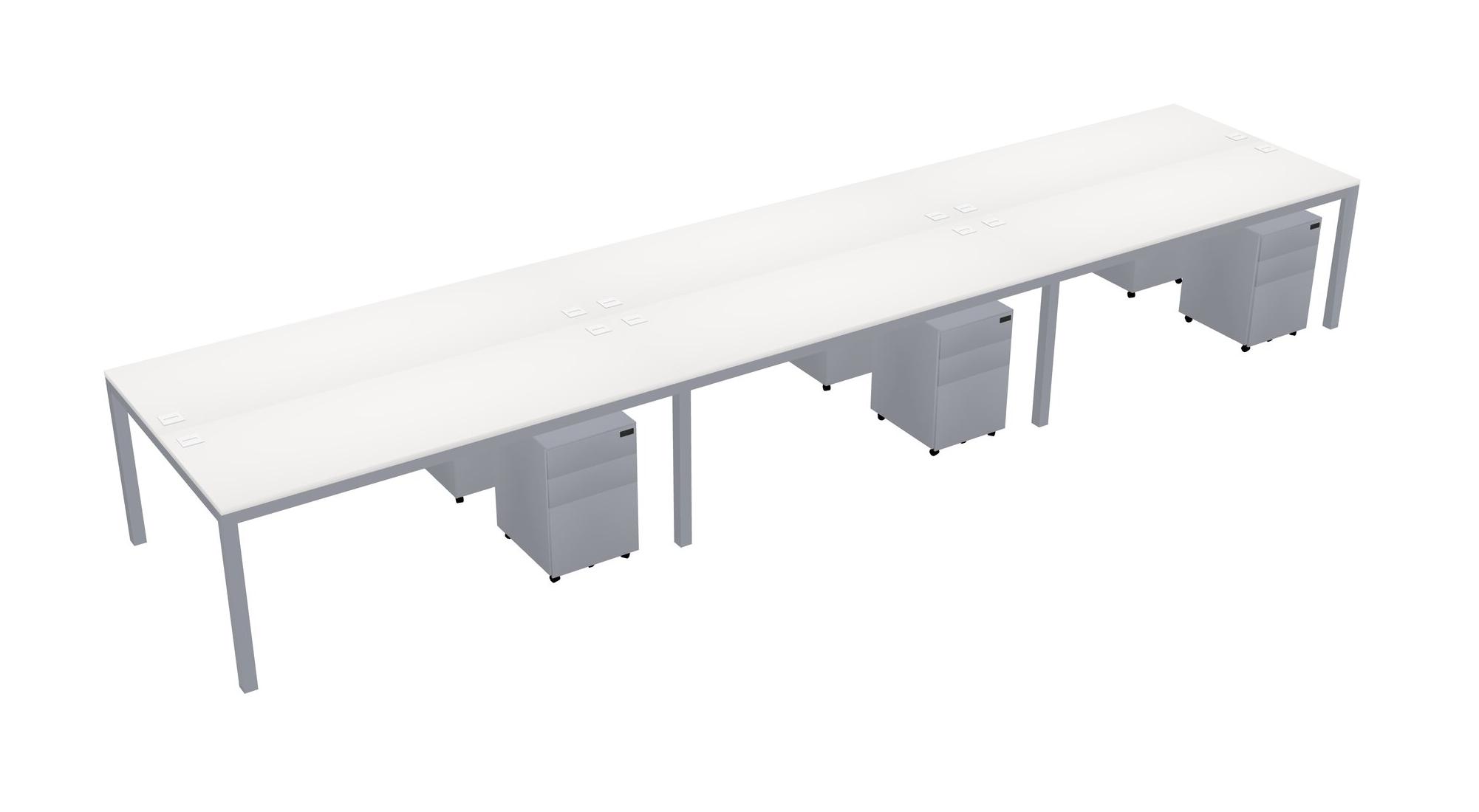 White Shared Rectangular Office Desk With Metal Mobile Drawers For 6 Persons