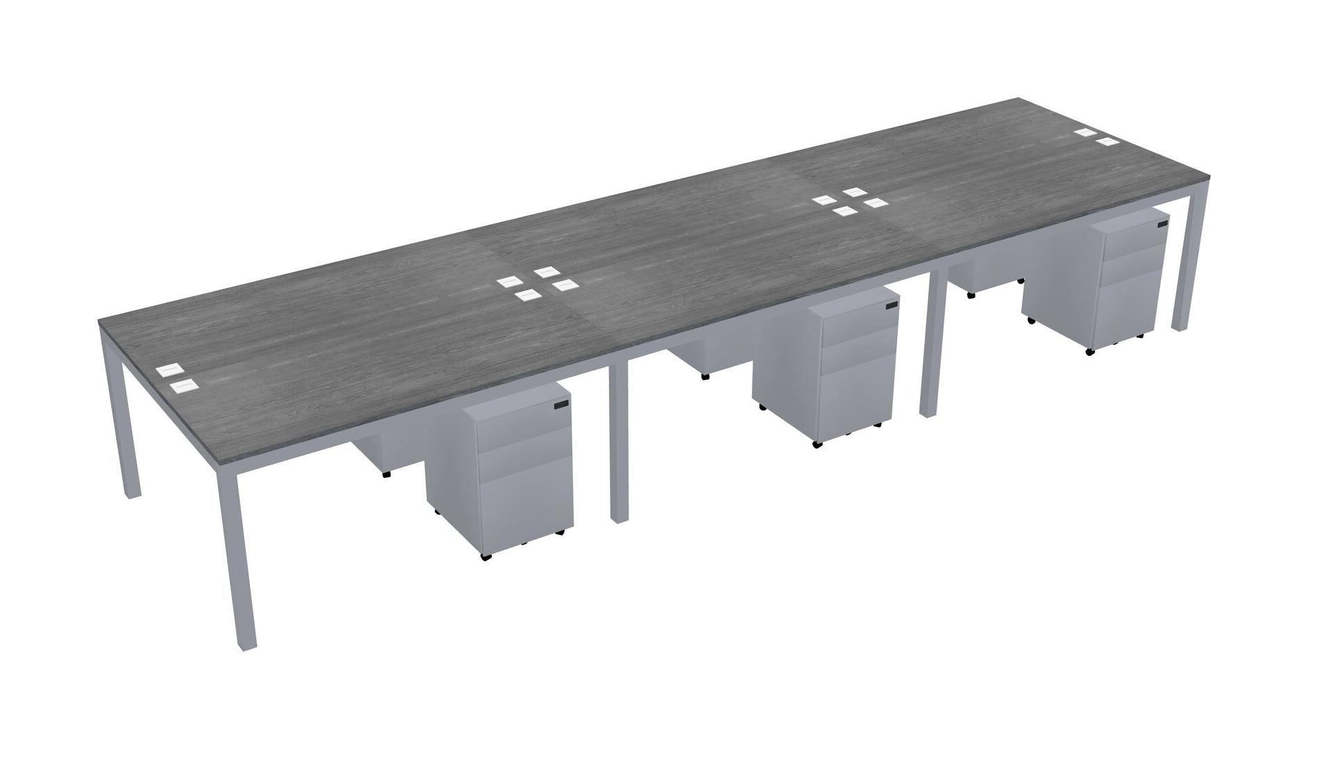 Grey Shared Rectangular Office Desk With Metal Mobile Drawers For 6 Persons